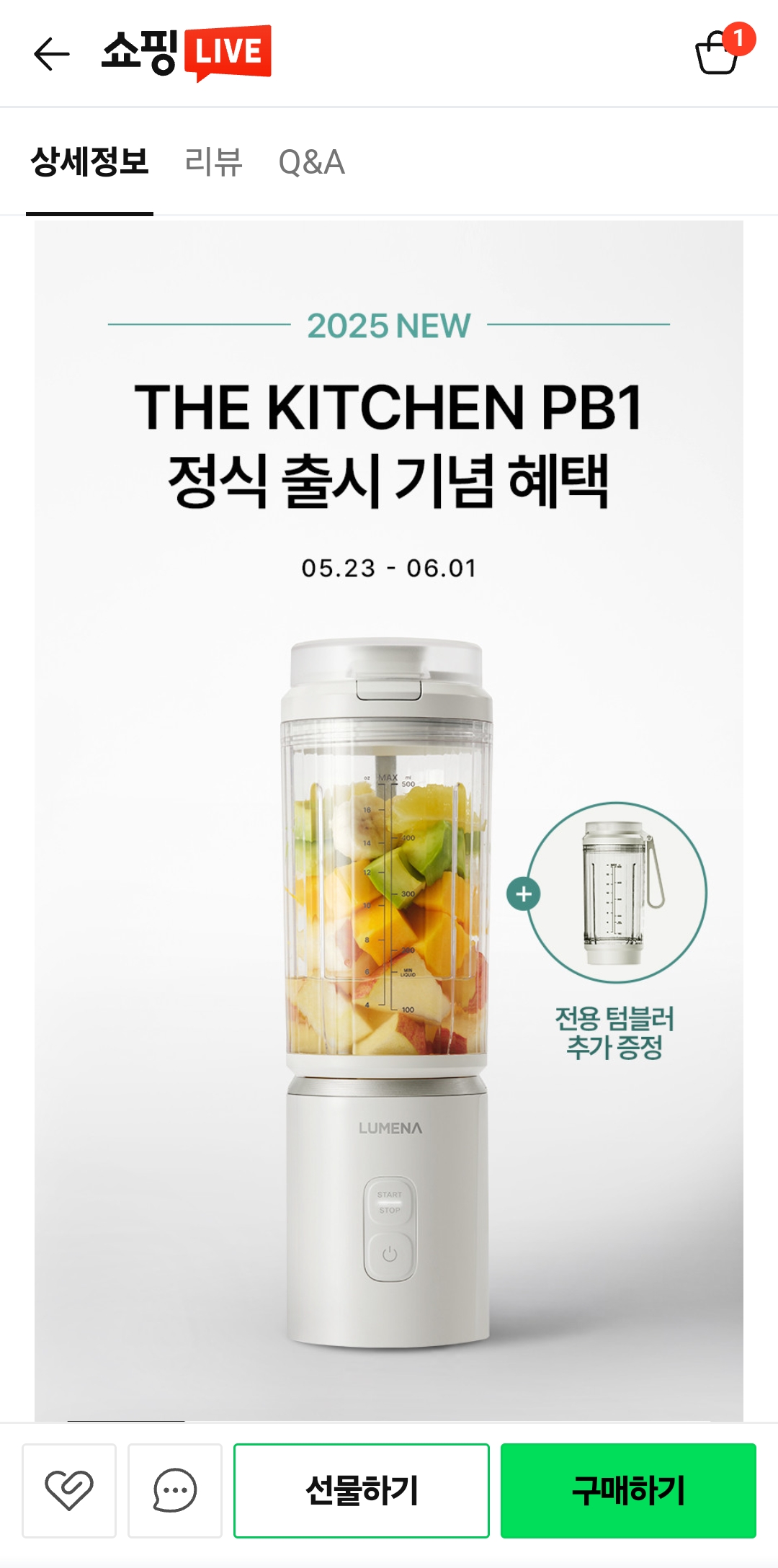 [네이버] 루메나 휴대용 무선블렌더 PB1 신상 특가 (74,000원/무료)