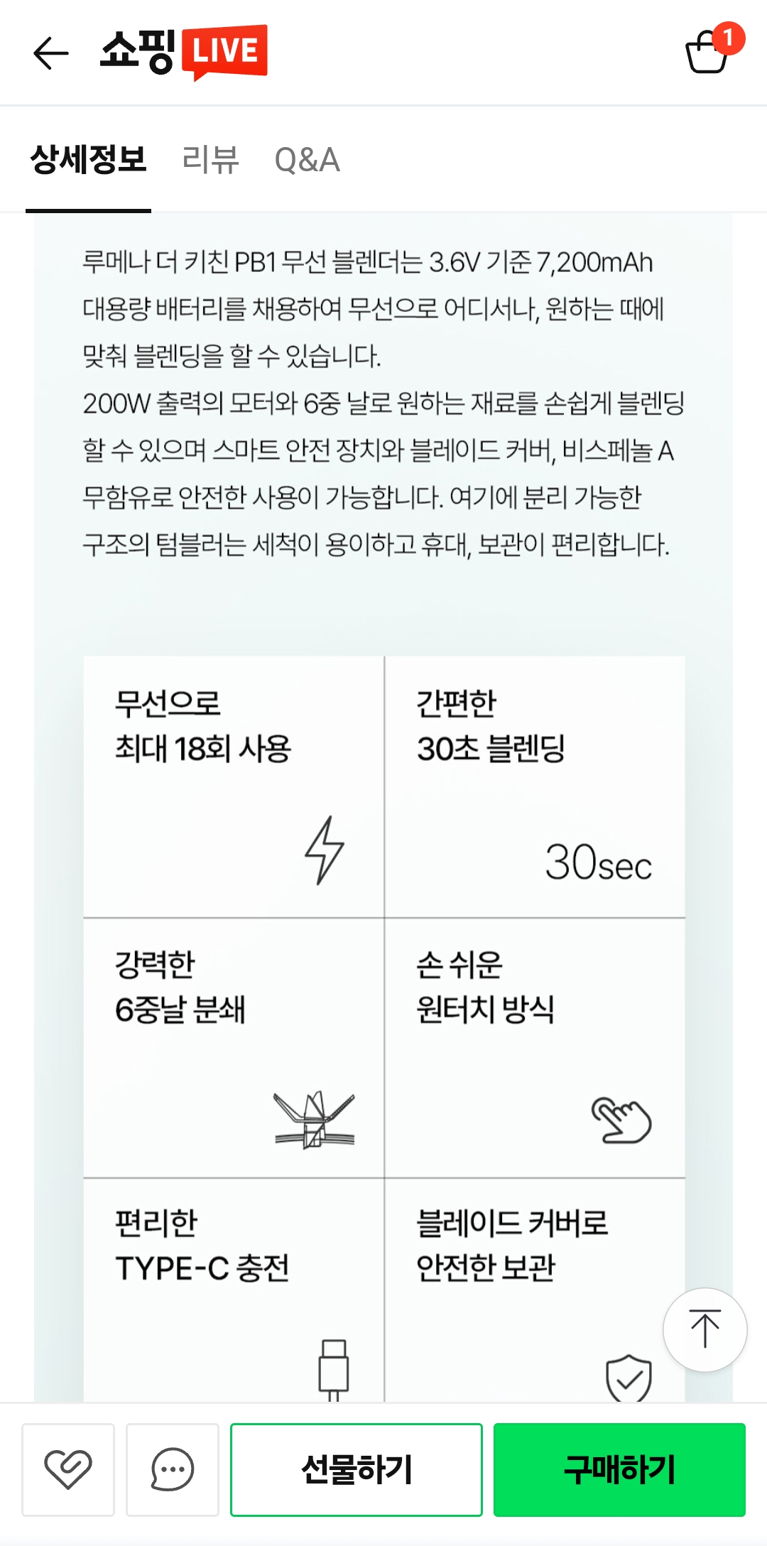 [네이버] 루메나 휴대용 무선블렌더 PB1 신상 특가 (74,000원/무료) > 국내핫딜