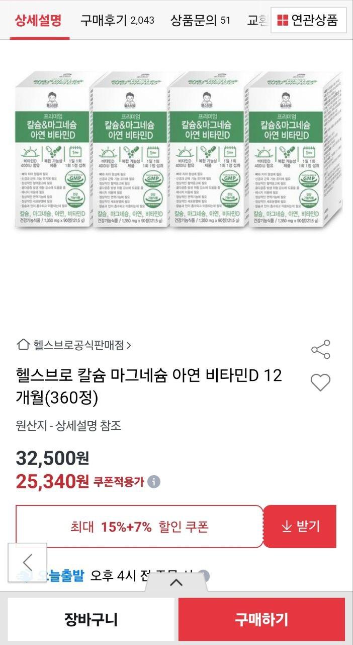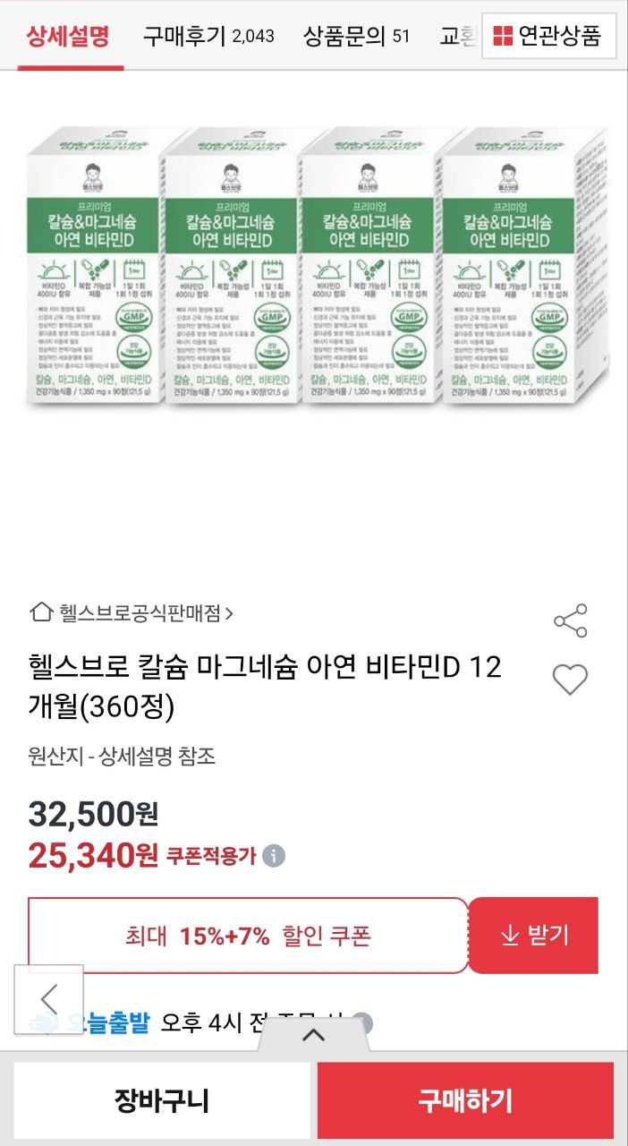 [옥션] 칼슘 마그네슘 아연 비타민D 360정 12개월분 대용량 (25,340원/무배) > 국내핫딜