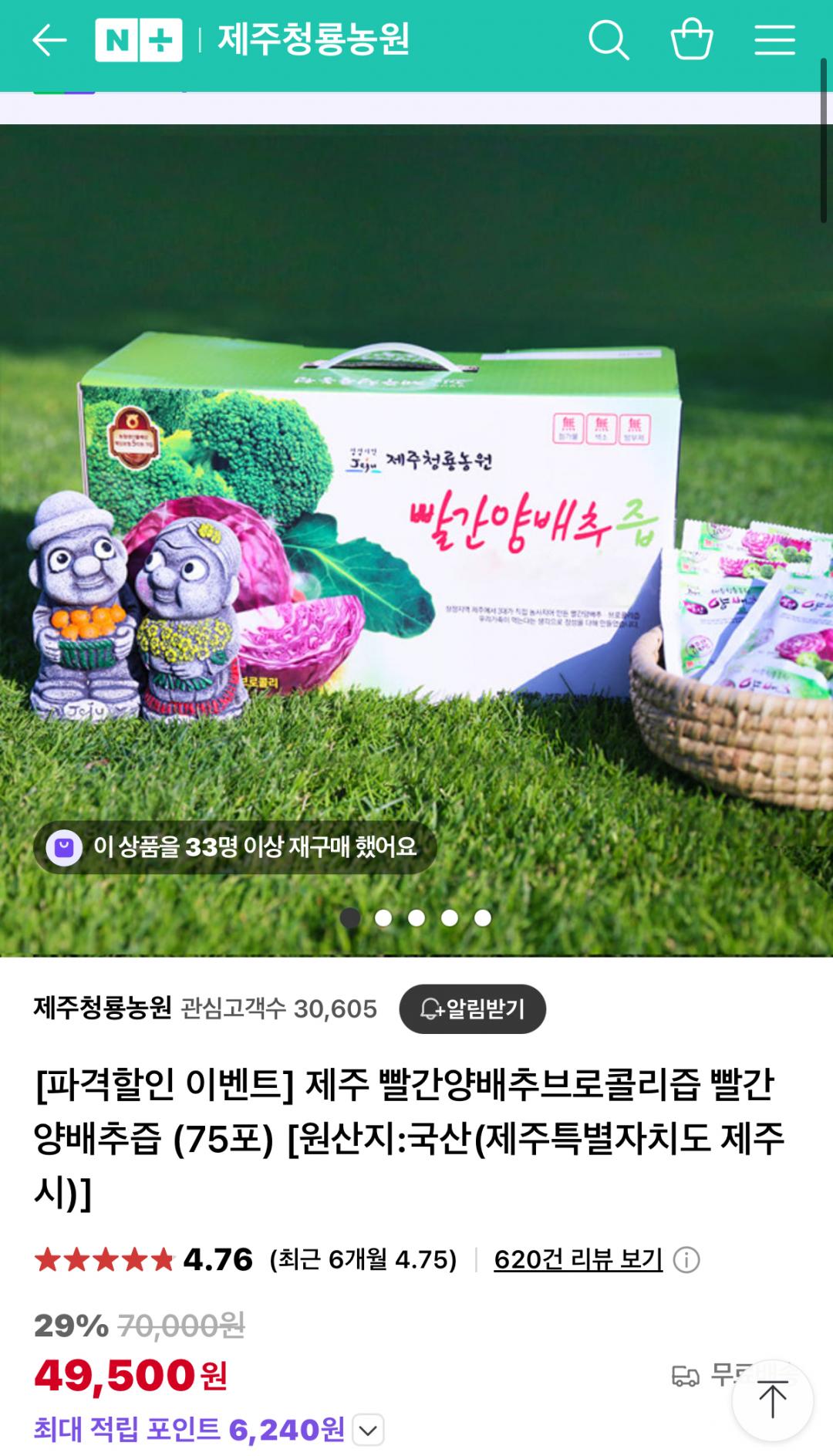 [네이버] 제주 빨간양배추브로콜리즙 빨간양배추즙(49,500원/무배) > 국내핫딜