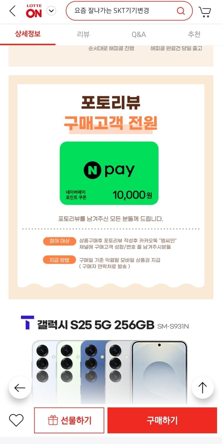 [롯데온] 삼성 갤럭시 S25 공시지원 기기변경 (100원/무료) > 국내핫딜