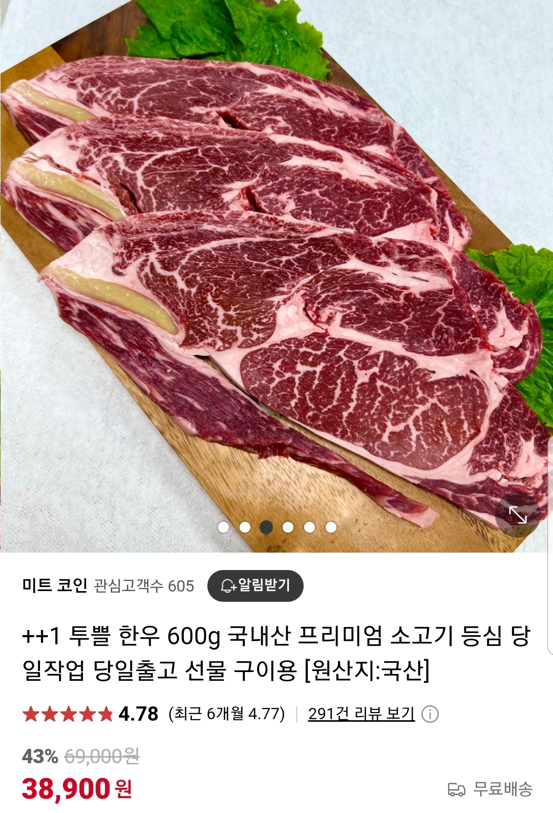 600g 할인가 38,900원 입니다. 100g당 6480원정도 나오네요.