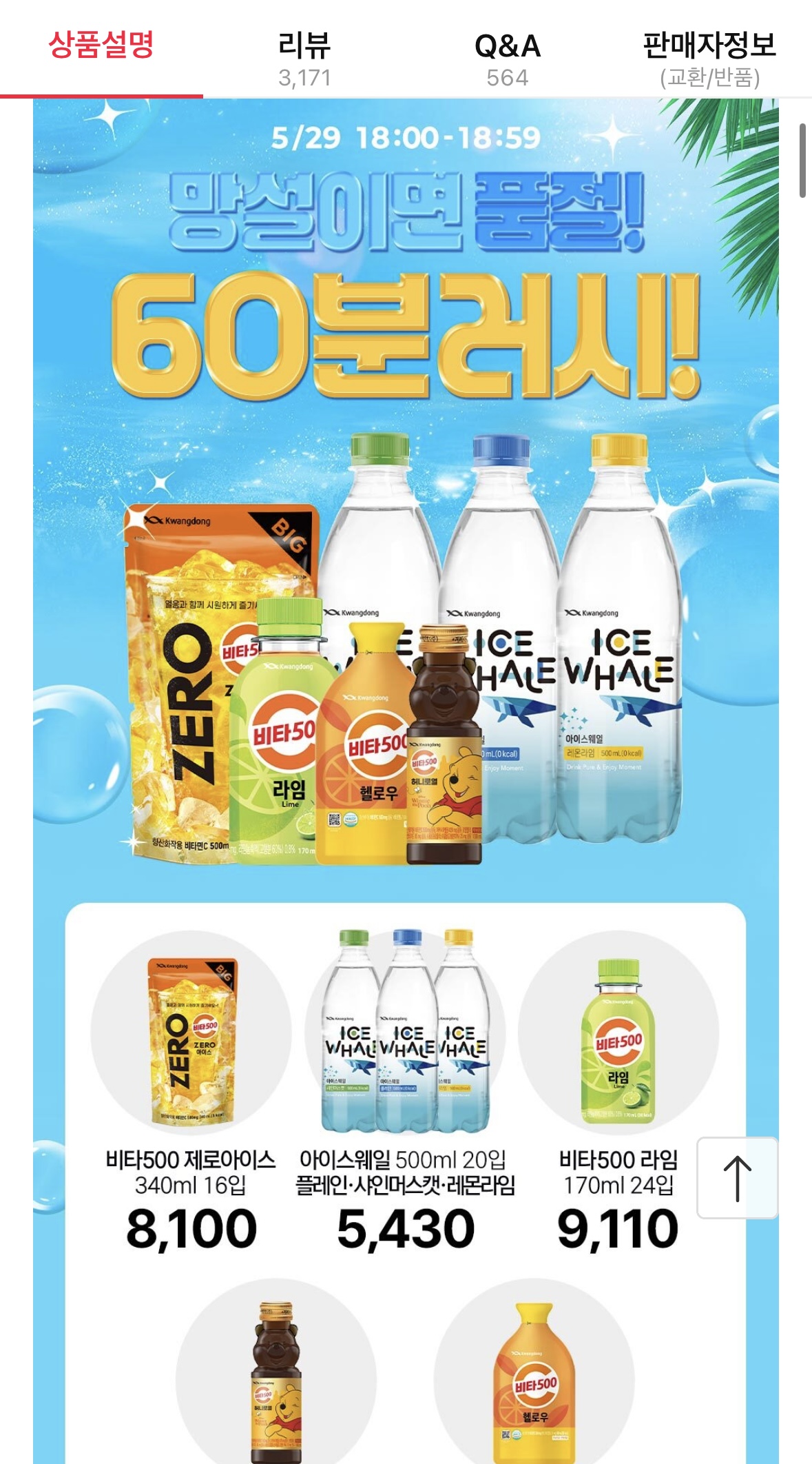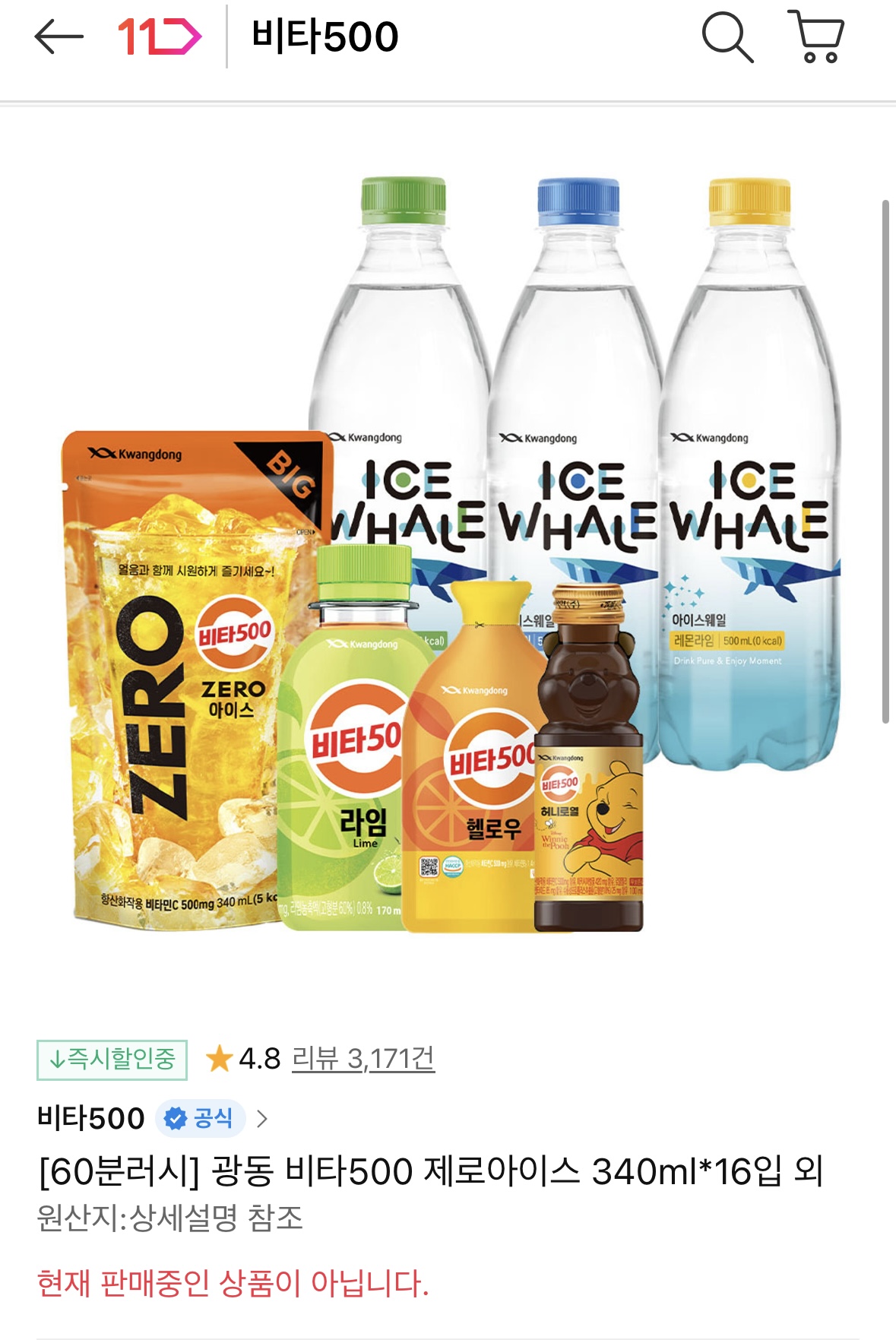 [11번가](60분러시 광동) 비타500 제로아이스 340ml 16개입 (7,920원/무료) > 국내핫딜