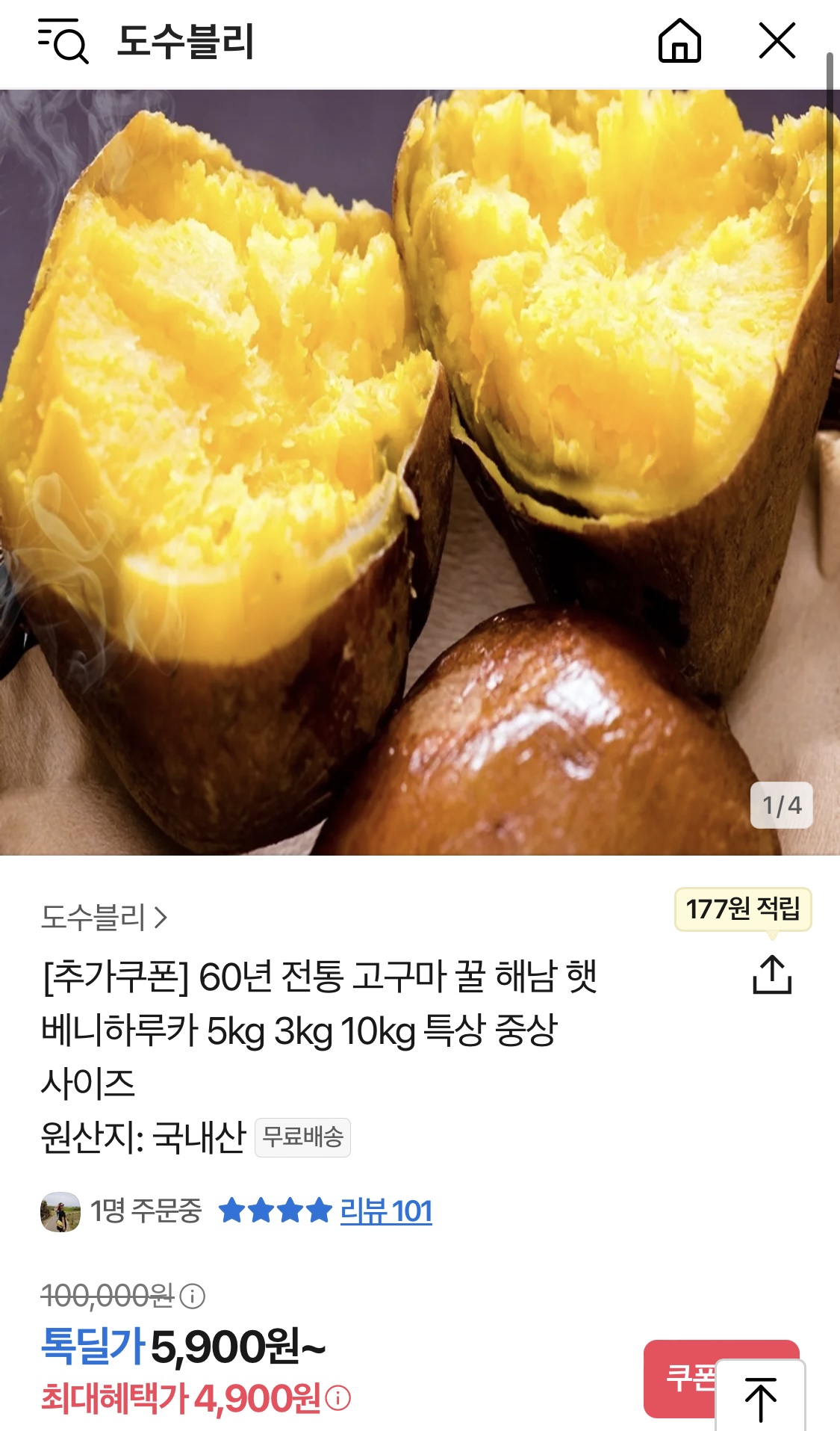 [카카오] 해남 베니하루카 꿀고구마 대왕5kg (10,900원/무료) > 국내핫딜