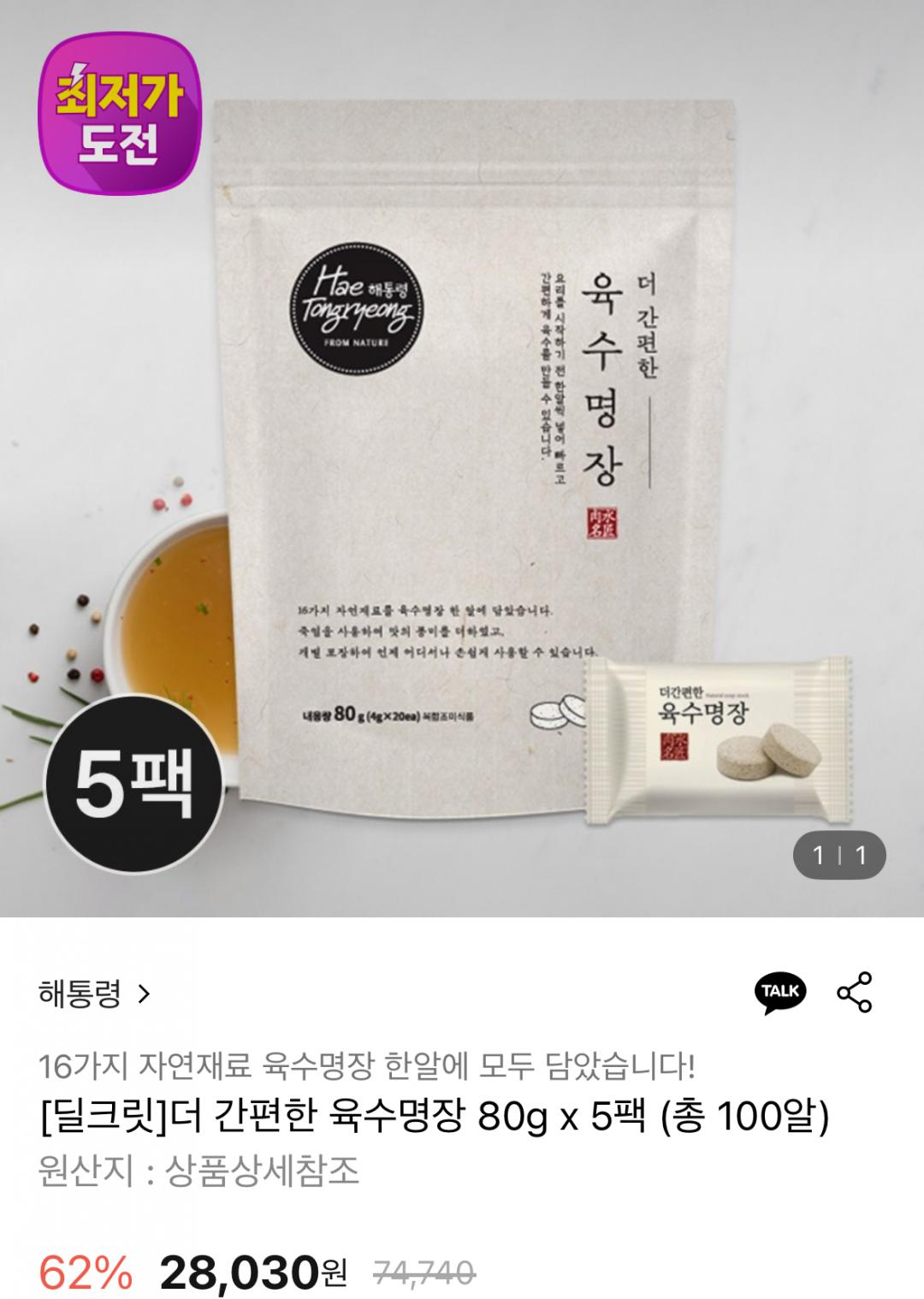 [롯데온] 해통령 더 간편한 육수명장 80gx5팩(총100알) (28,030원/무료) > 국내핫딜