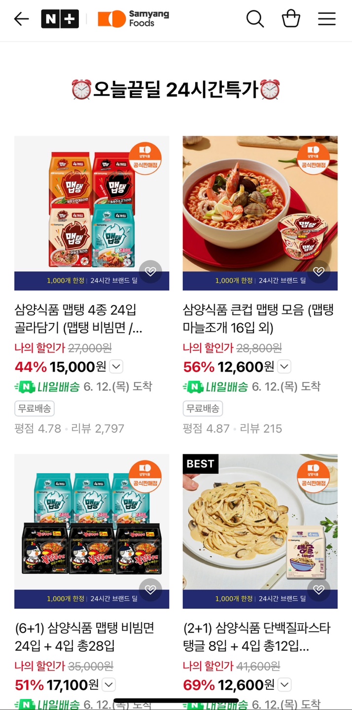 삼양식품 오늘 끝딜 행사합니다 24시간 특고