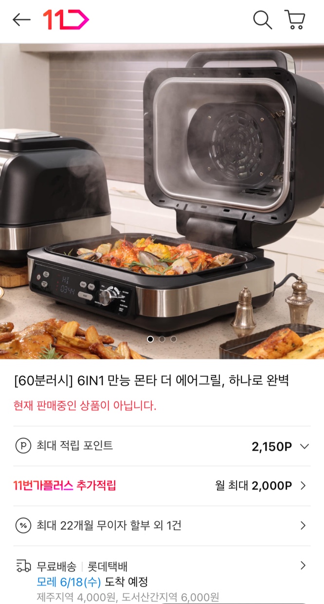 [11번가] (60분러시) 6IN1 만능 몬타 더 에어그릴 (99,000원/무료) > 국내핫딜
