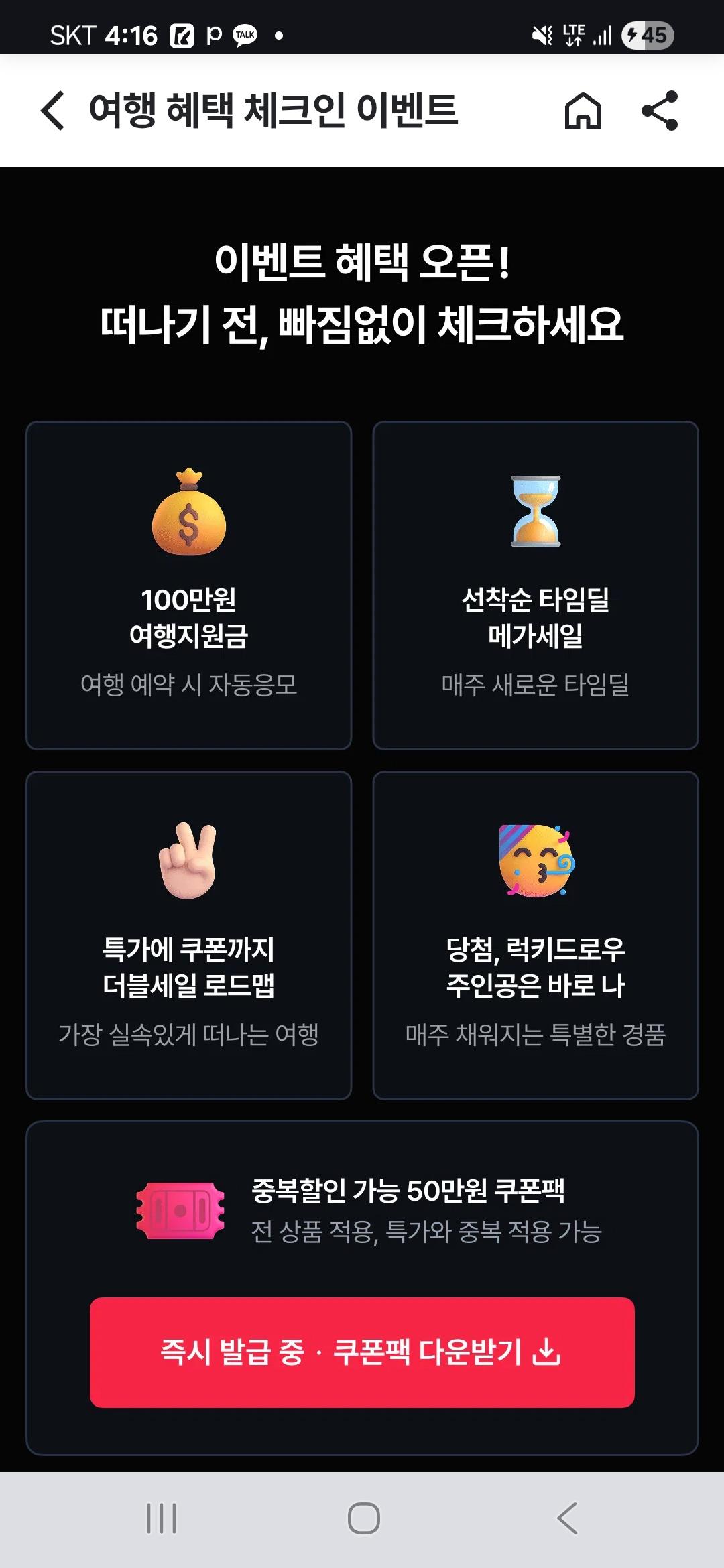 트립스토어 여행혜택 체크인 이벤트 하는데 가격 괜찮네요.