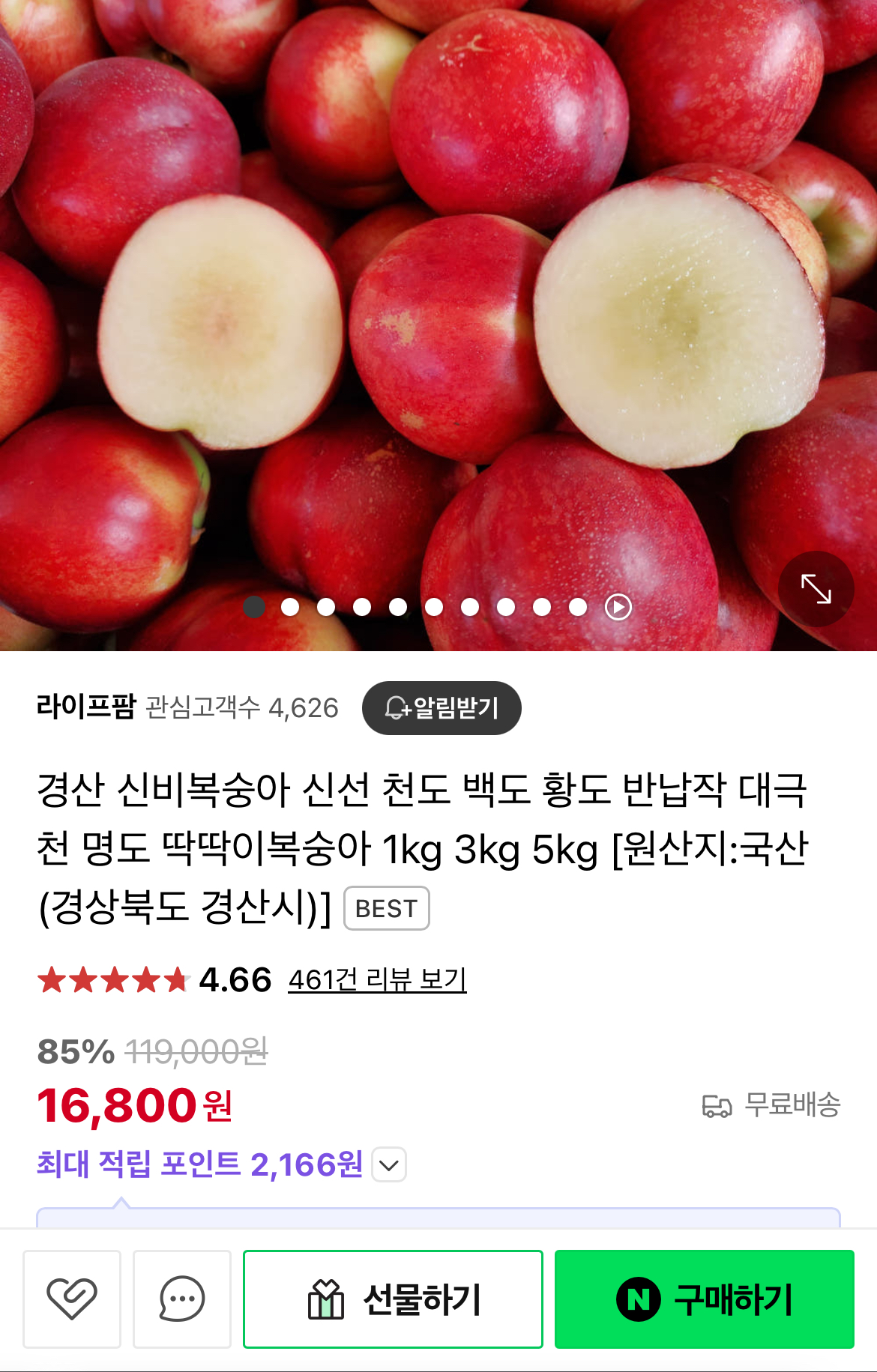 [네이버] 신선복숭아 로얄과 1kg (16,800원/무배) > 국내핫딜