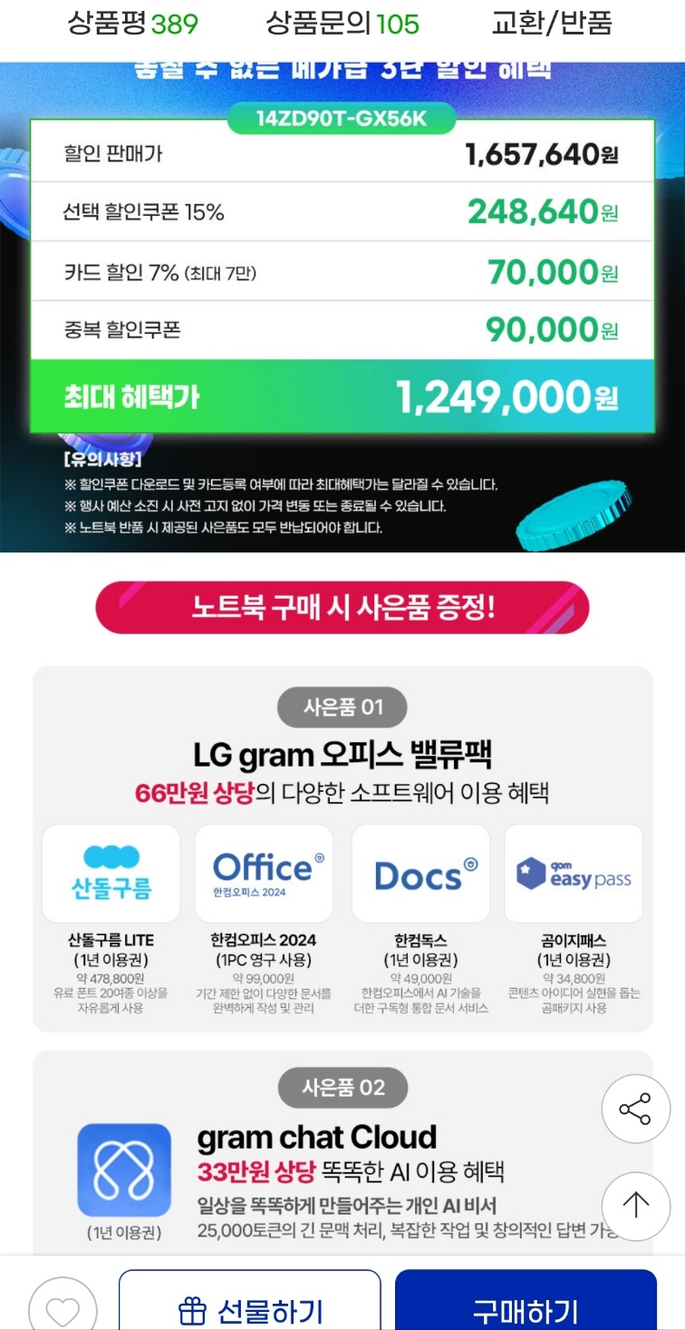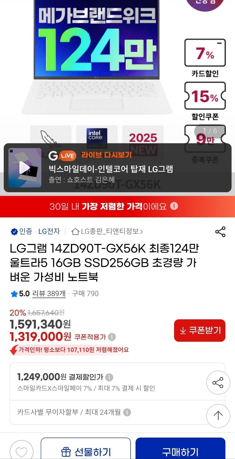 [지마켓] LG그램 14ZD90T-GX56K (1,240,000원/무료배송) > 국내핫딜