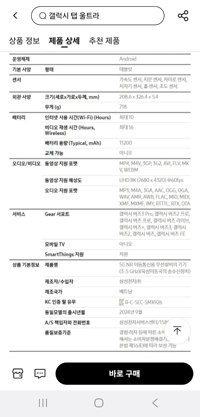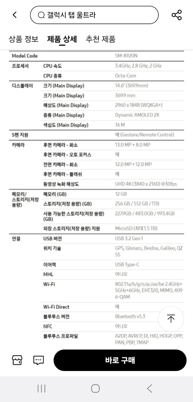 갤럭시탭10 S10울트라 5G 1TB 현존 최고 사양의 초대형 화면을 탑재한 모델