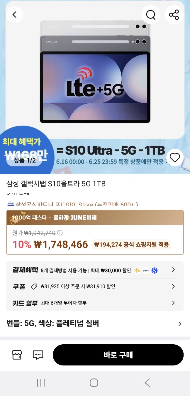 즉시할인 쿠폰 31,910원 받고 + 국민카드 결제 혜택 30,000원 까지 받으면
