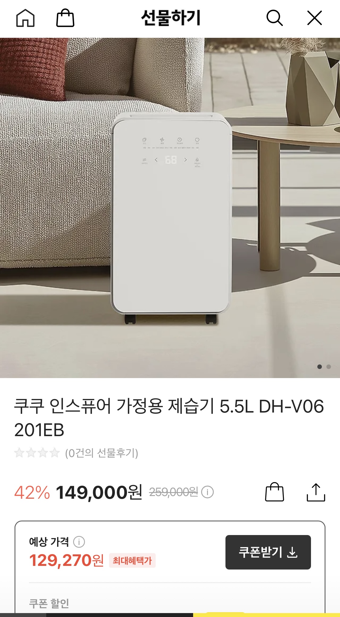 [카카오] 쿠쿠 제습기 129,270원 특가 > 국내핫딜
