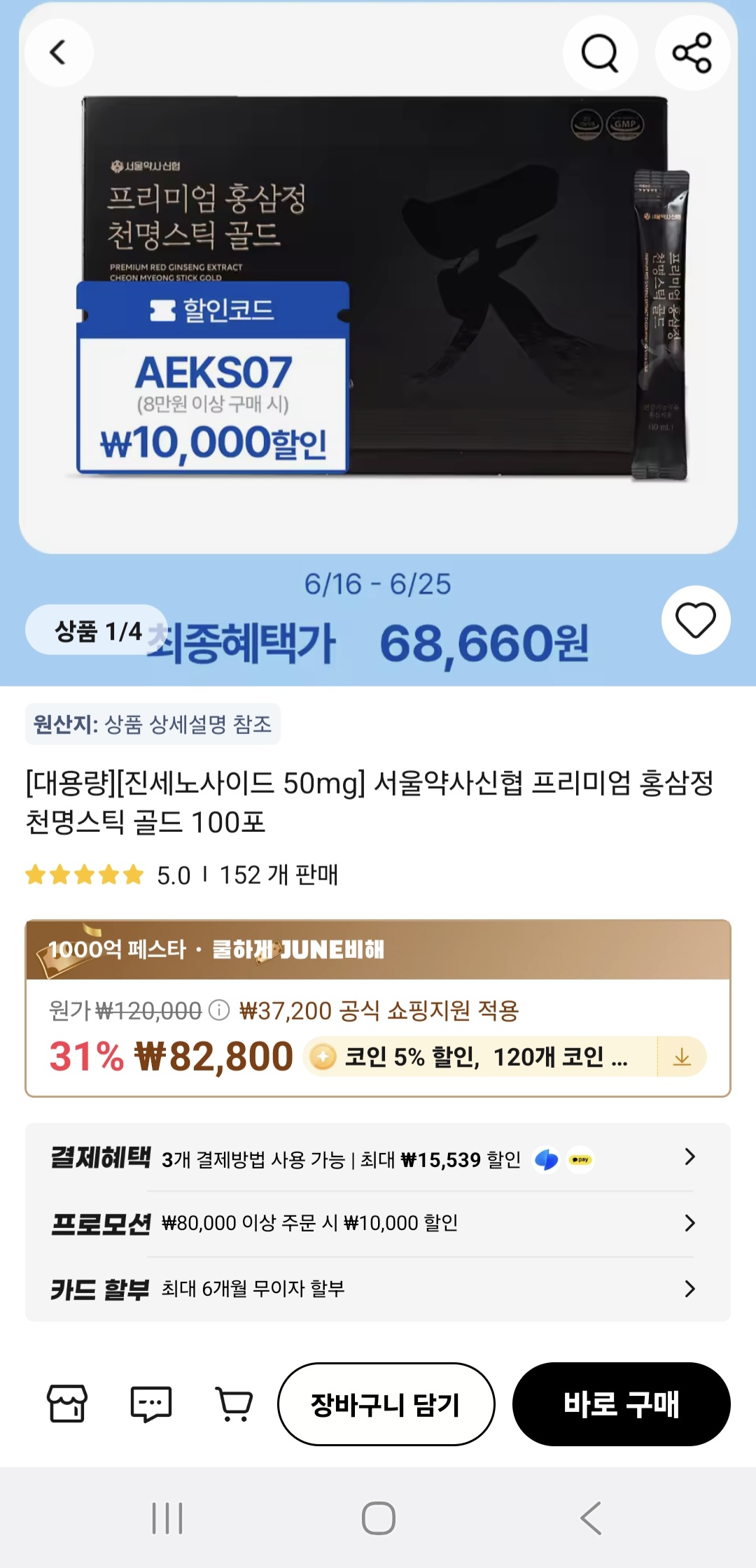 50mg 프리미엄 홍삼정 천명스틱 홍삼이에요 100포 에 7만원대라 저렴하네요