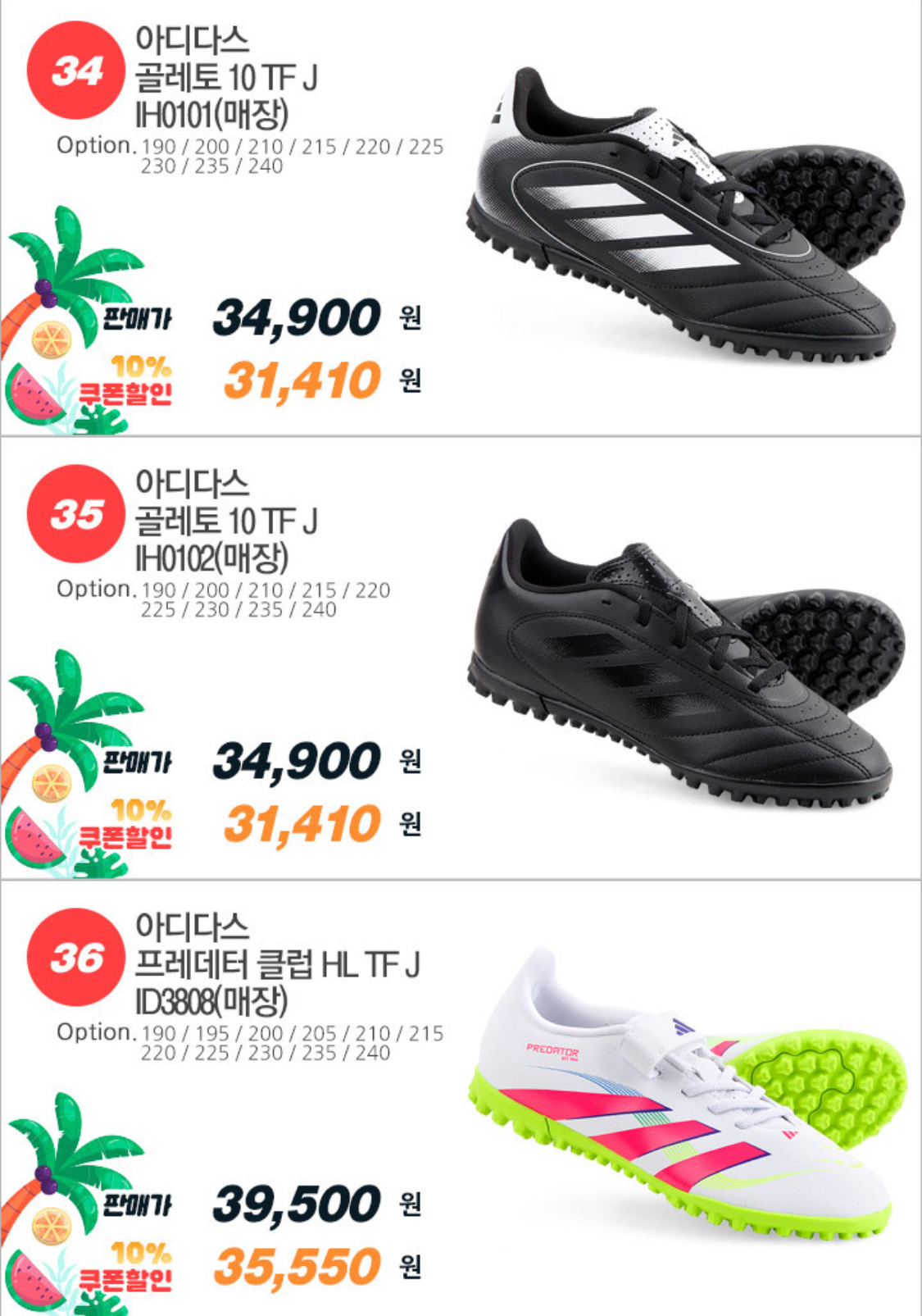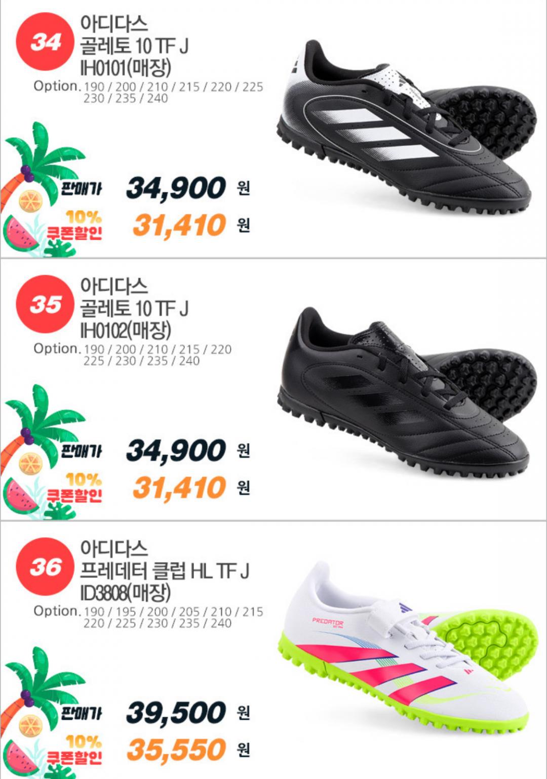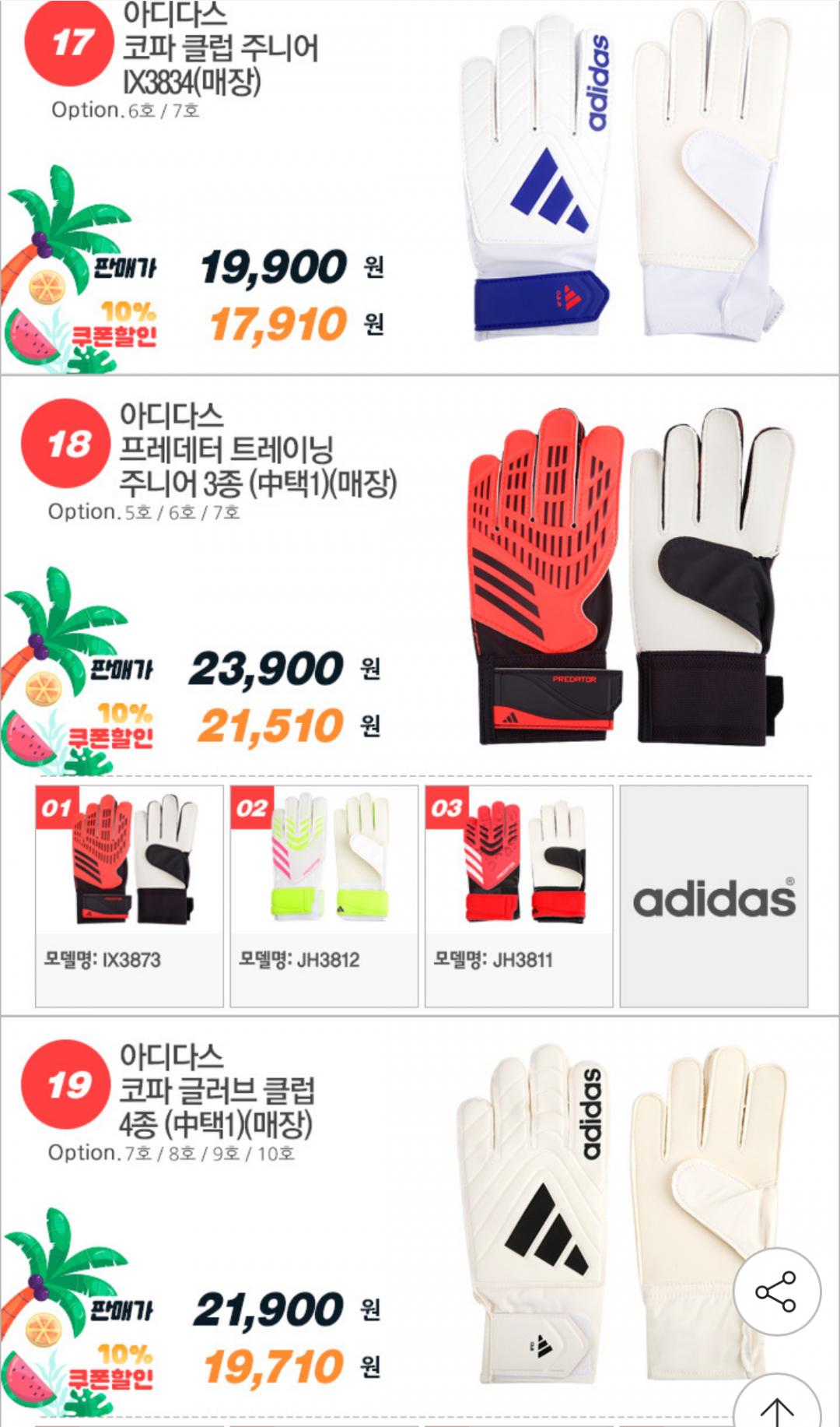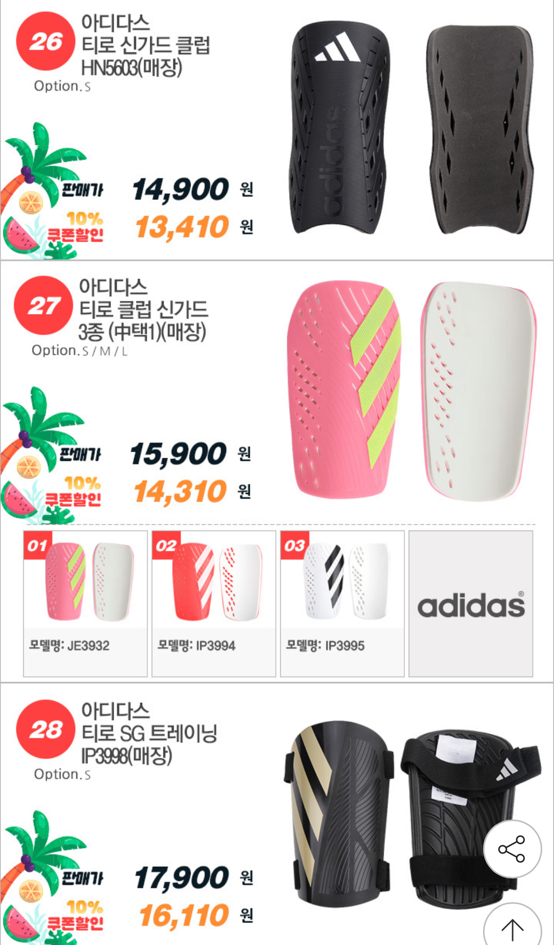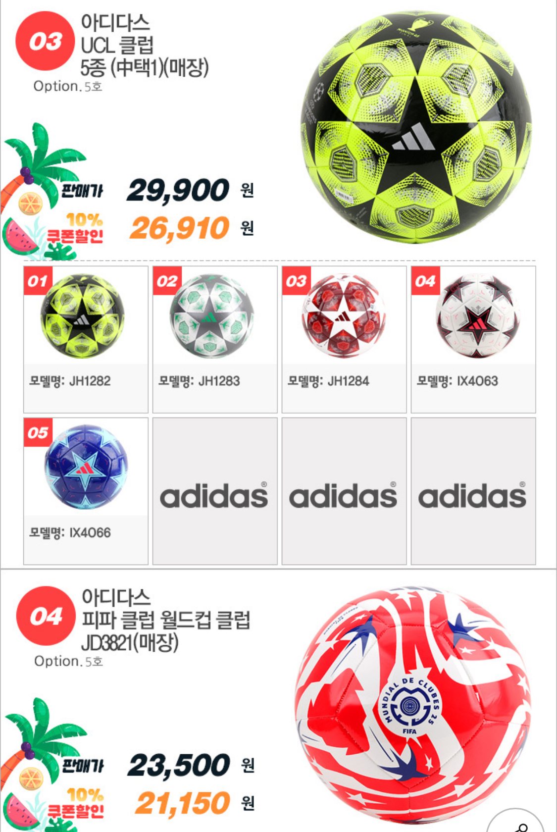 현재 챔피언스리그 공, 정강이 보호대, 장갑, 축구 양말 등