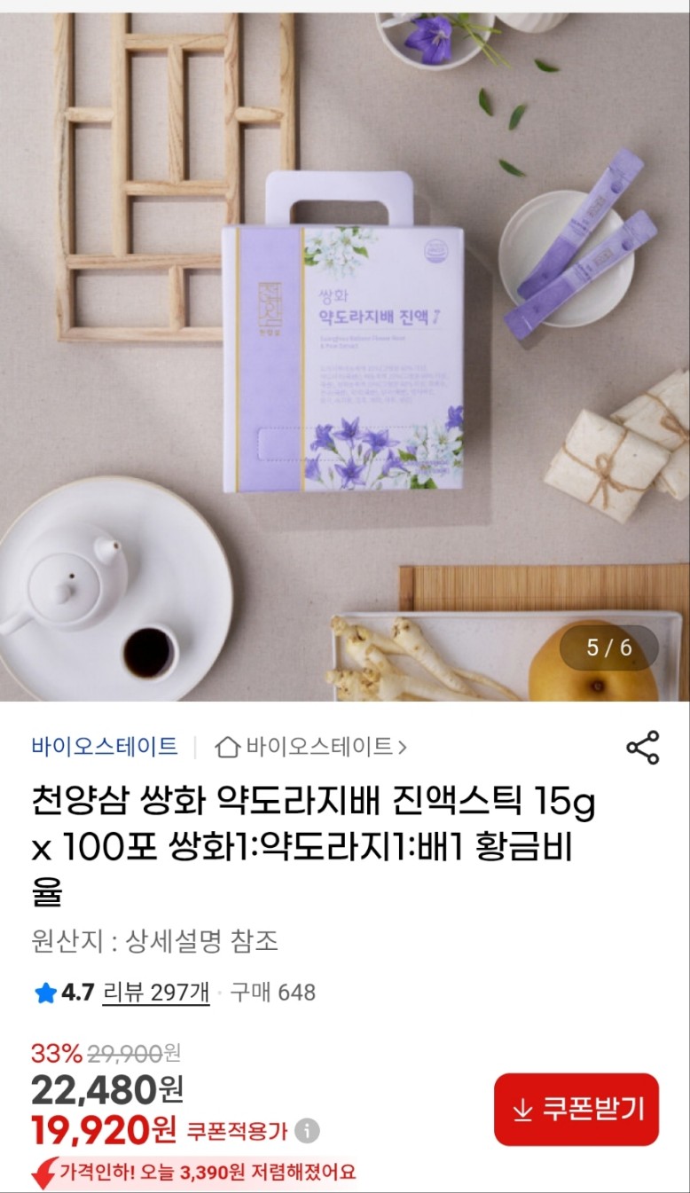 [G마켓] 국산 약도라지배 쌍화 진액스틱 15g x 100포 (19,920원/무료) > 국내핫딜