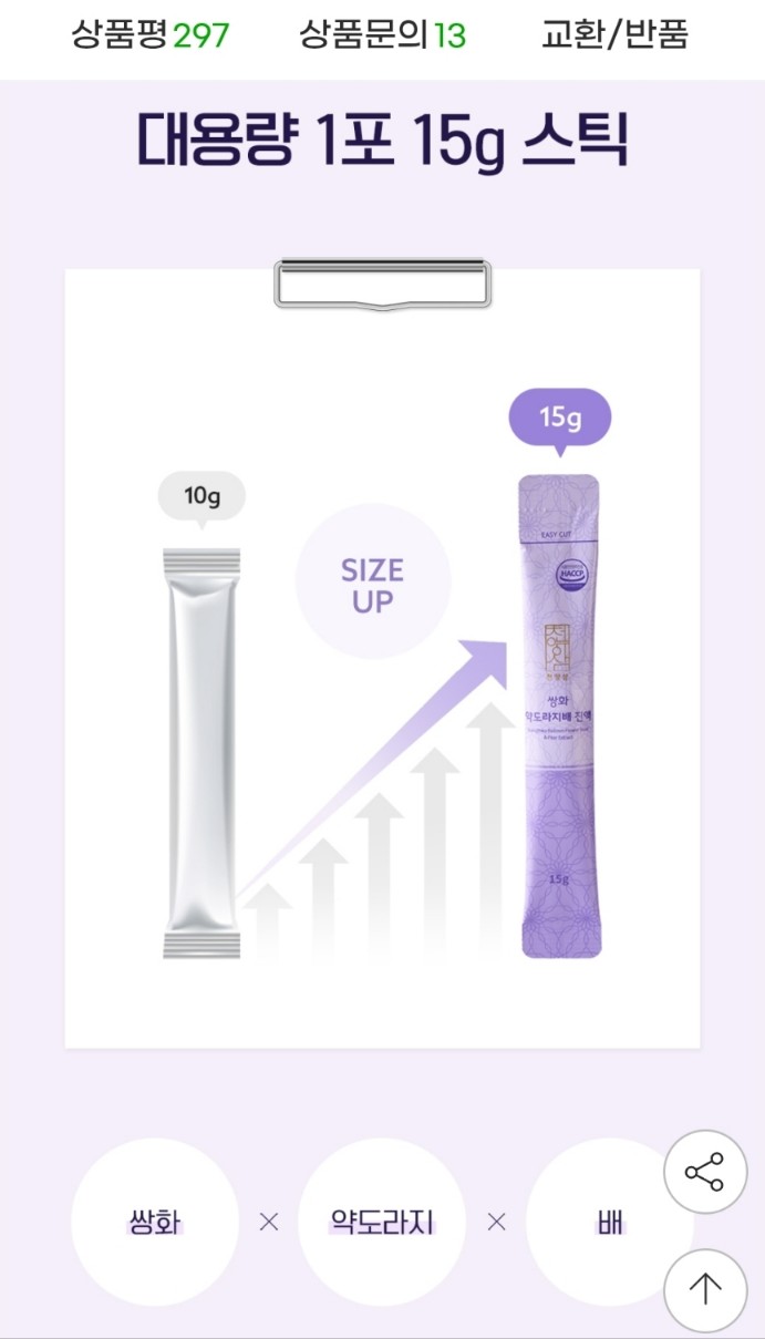 [G마켓] 국산 약도라지배 쌍화 진액스틱 15g x 100포 (19,920원/무료)