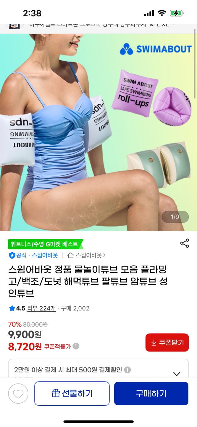 [지마켓] 스윔어바웃 물놀이용품, 암튜브, 어린이튜브, 성인튜브 등 (8720원/무료) > 국내핫딜