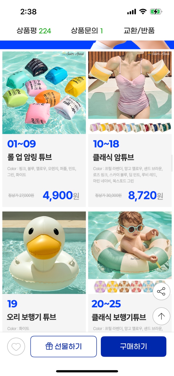 10~18번 암튜브 상품이고 품절된 컬러도 있네요.