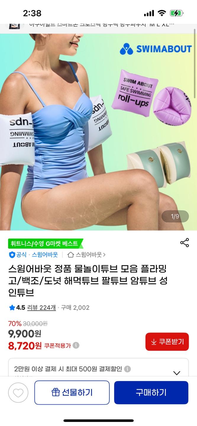 스윔어바웃 정품 물놀이 튜브 지마켓에서 할인하고있습니다!