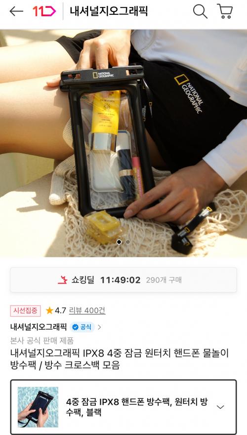 [11번가] 내셔널지오그래픽 IPX8 4중잠금 핸드폰 방수팩 (9,900원/무료) > 국내핫딜