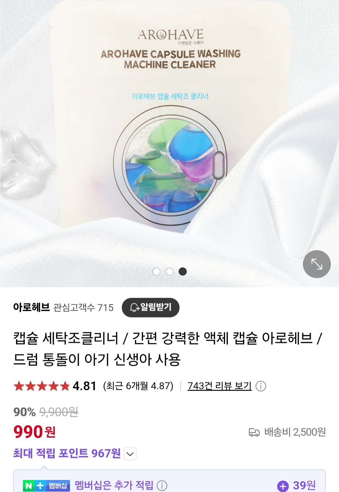복잡하게 계량할 필요 없이 캡슐 하나만 툭 던져 넣으면 끝이라 세상 편합니다. 세척력도 강해서 찌든 때, 물때 걱정 없이 깔끔하게 청소해 준다네요