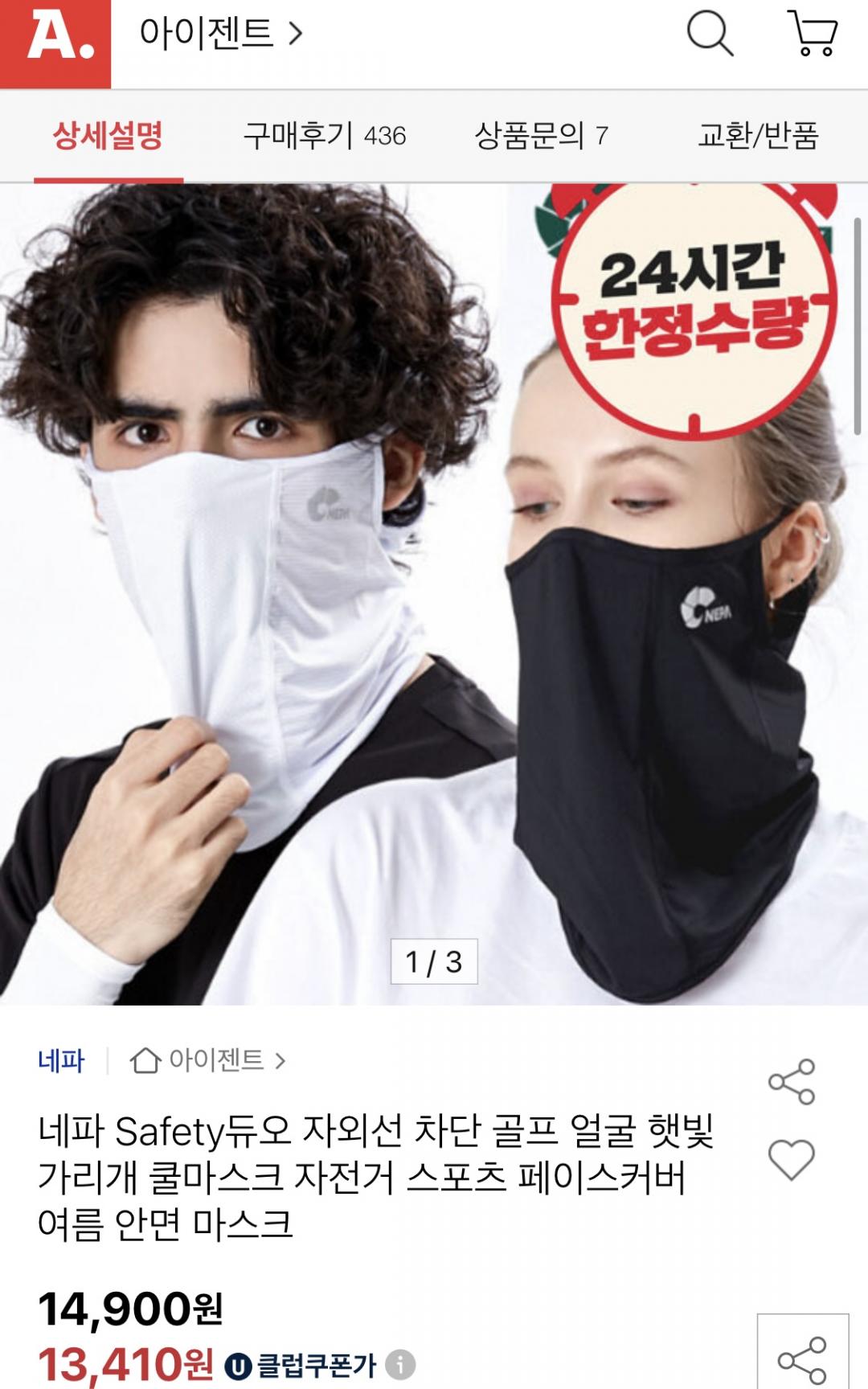 [옥션] 네파 자외선 차단 페이스커버 안면마스크 (14,900원/무료)
