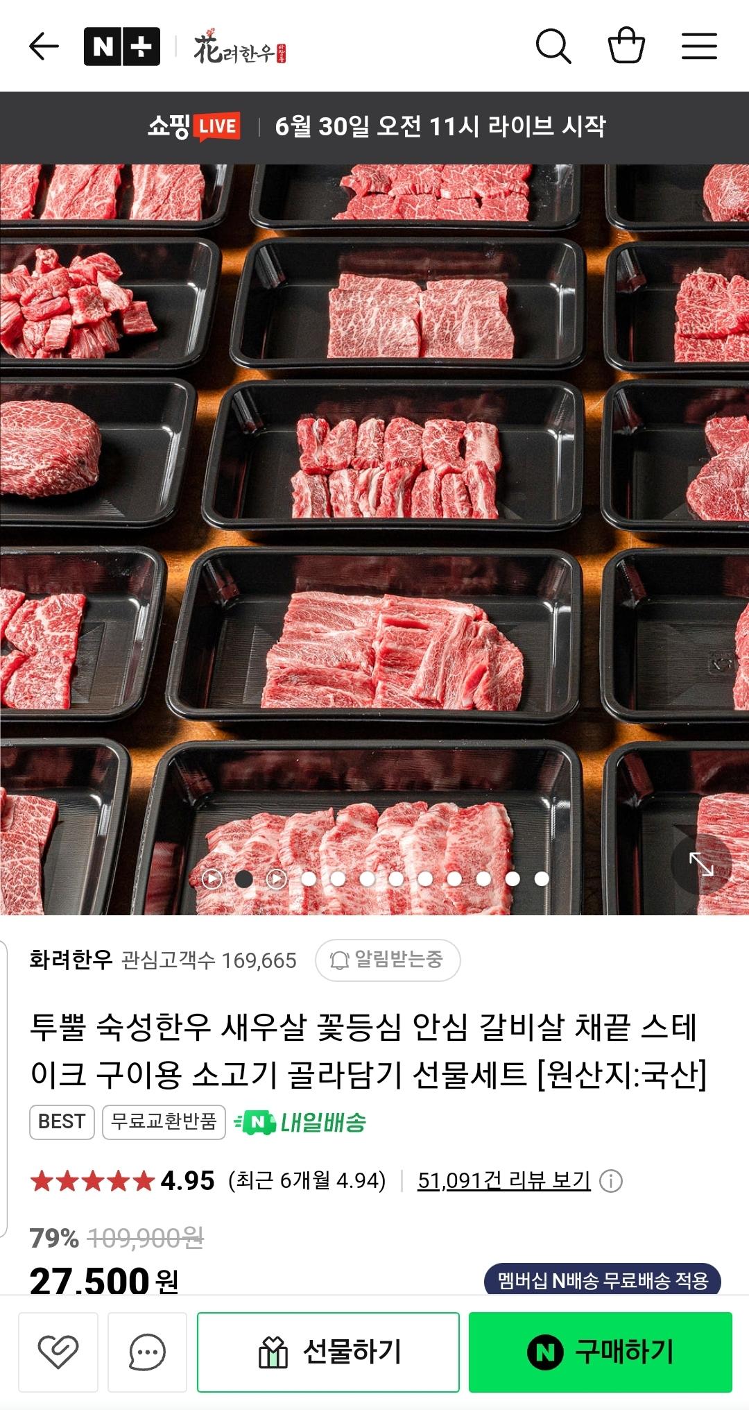 [네이버] 화려한우 1++ 한우육회 총 400g (16,680원/네맴무배) > 국내핫딜