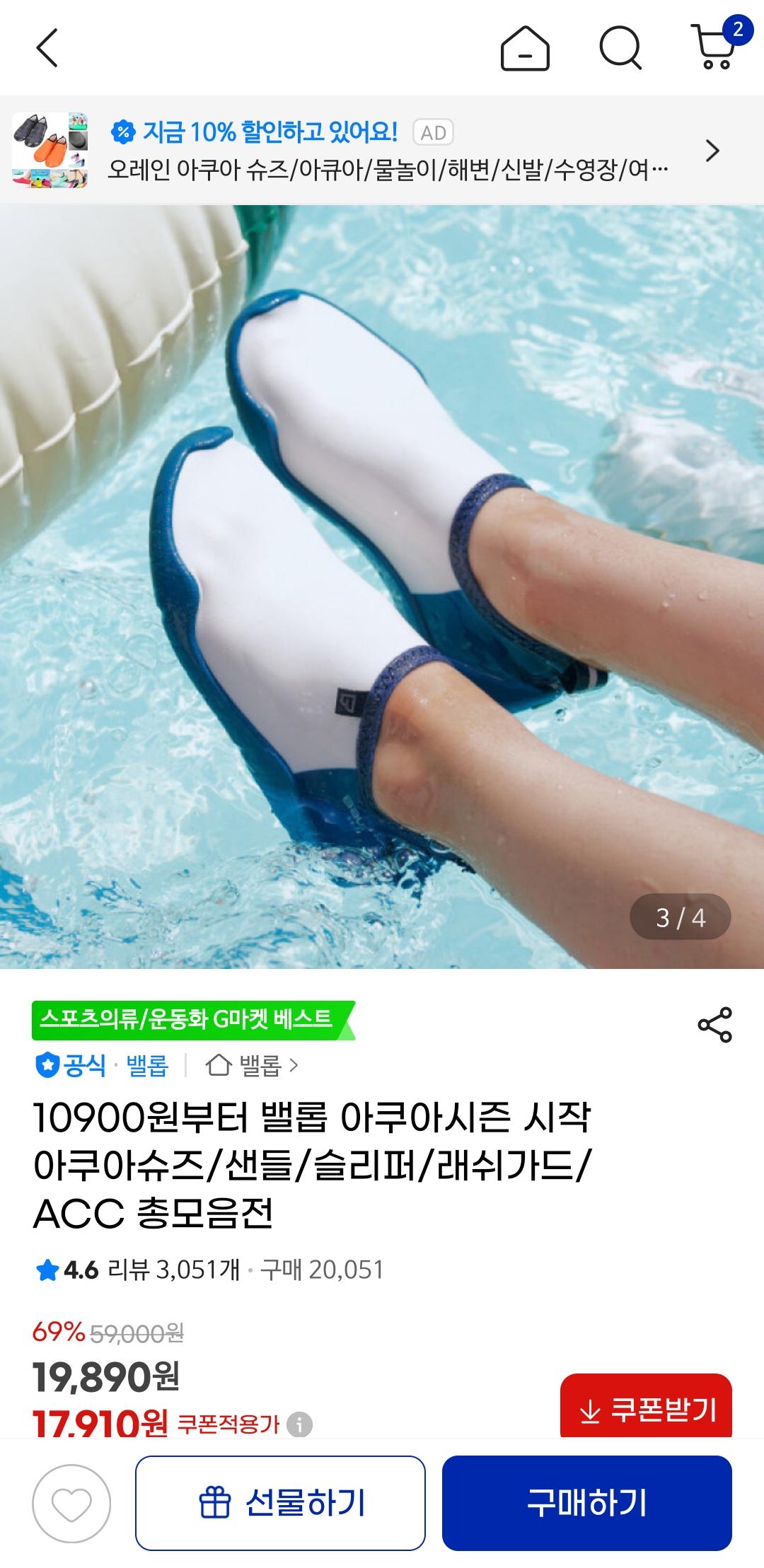 밸롭 아쿠아슈즈 쿠폰쓰면 17,910원 나오구요.