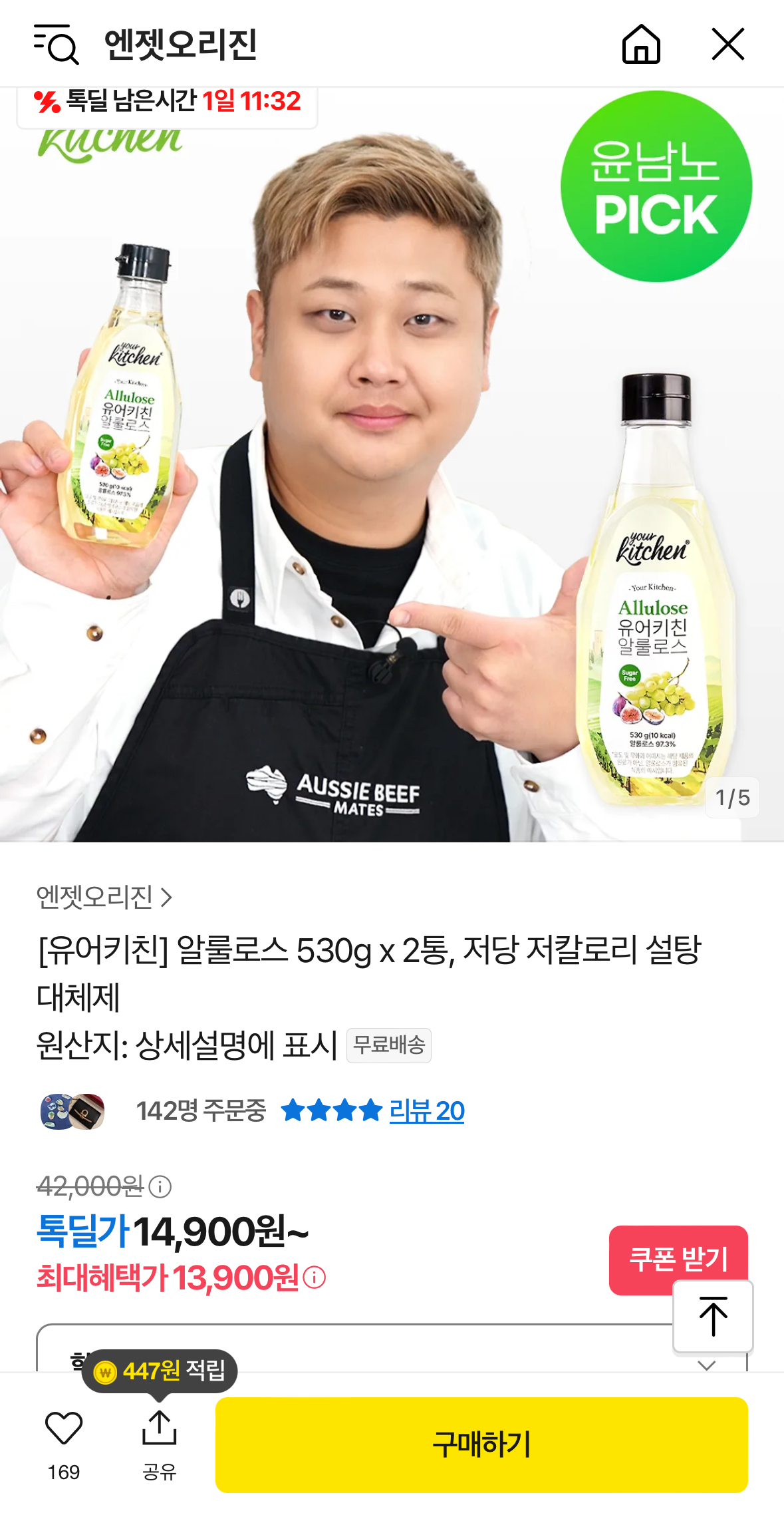 [카카오톡딜] 유어키친 알룰로스 530g x 2통 (13,900원/무료)