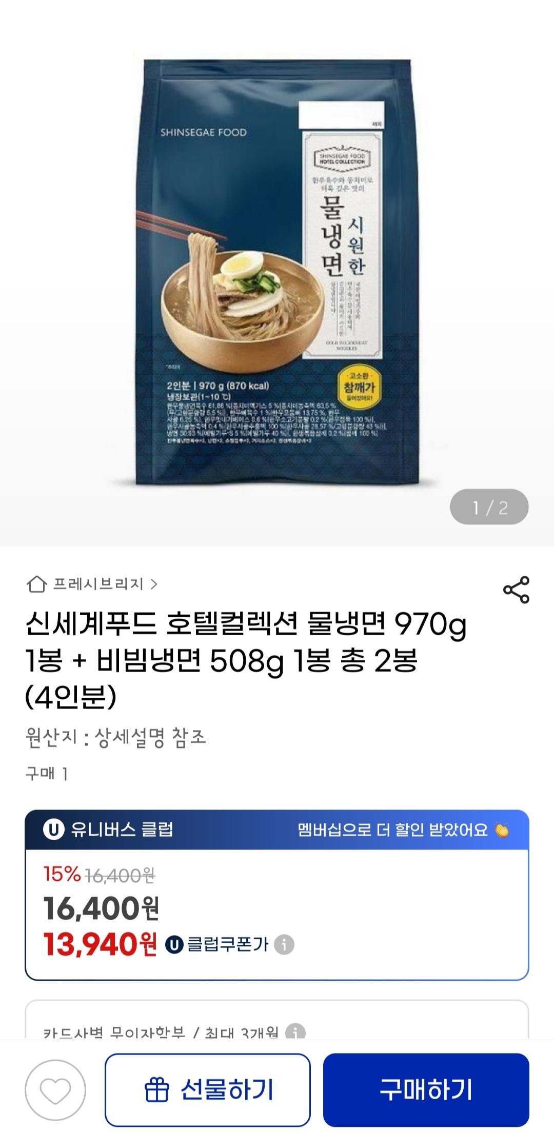 [지마켓] 호텔컬렉션 물냉+비냉 4인분(유클 13,940원/무배) > 국내핫딜