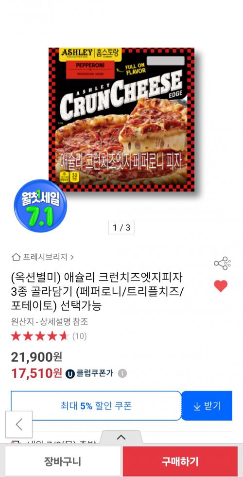 [옥션] 애슐리 크런치즈엣지 피자 3판 골라담기(유클가 17,510 / 무배) > 국내핫딜