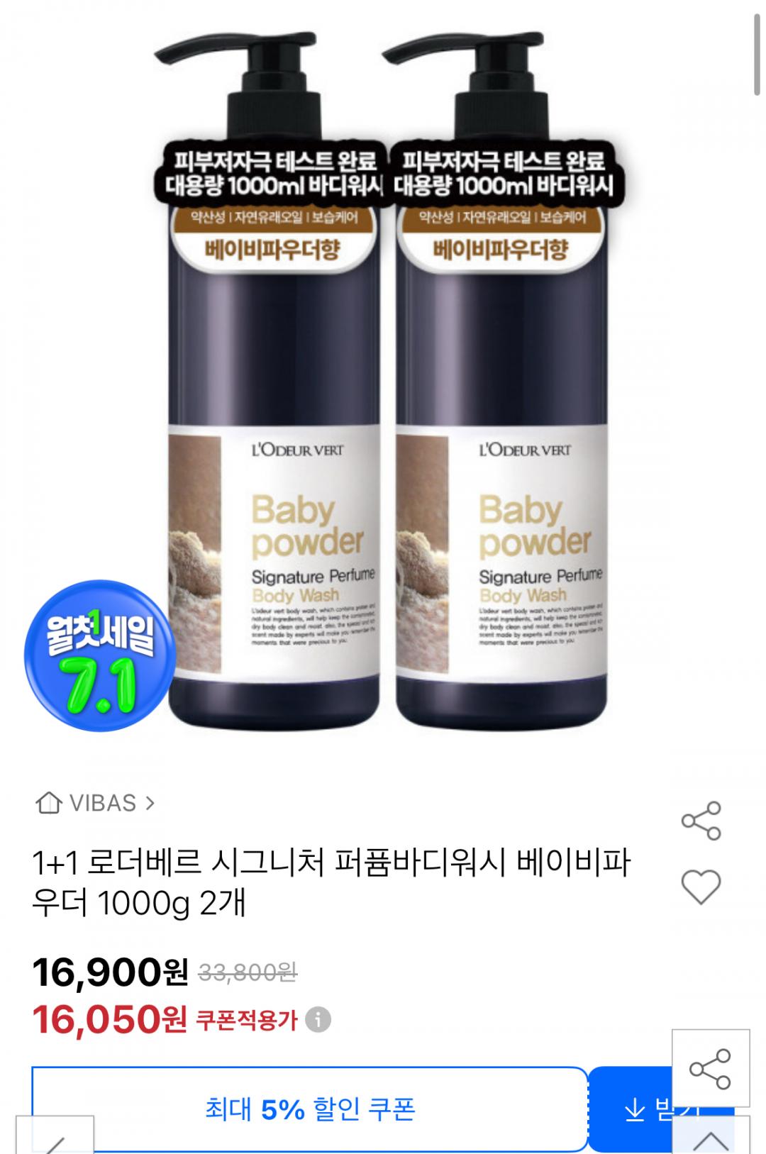 [옥션] 로더베르 대용량 바디워시 1kg 2개 (16,050원/무배)