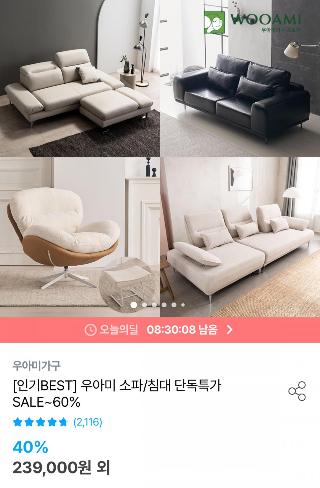 [오늘의집] 우아미 소파 사만다 4인용 조야 패브릭 쇼파 (499,000원/무료) > 국내핫딜