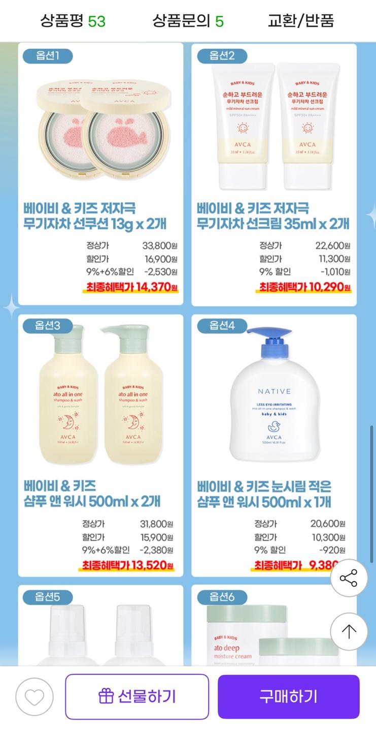 [지마켓] 베이비 키즈 저자극 무기자차 선쿠션 2개 (14,370원/무료)