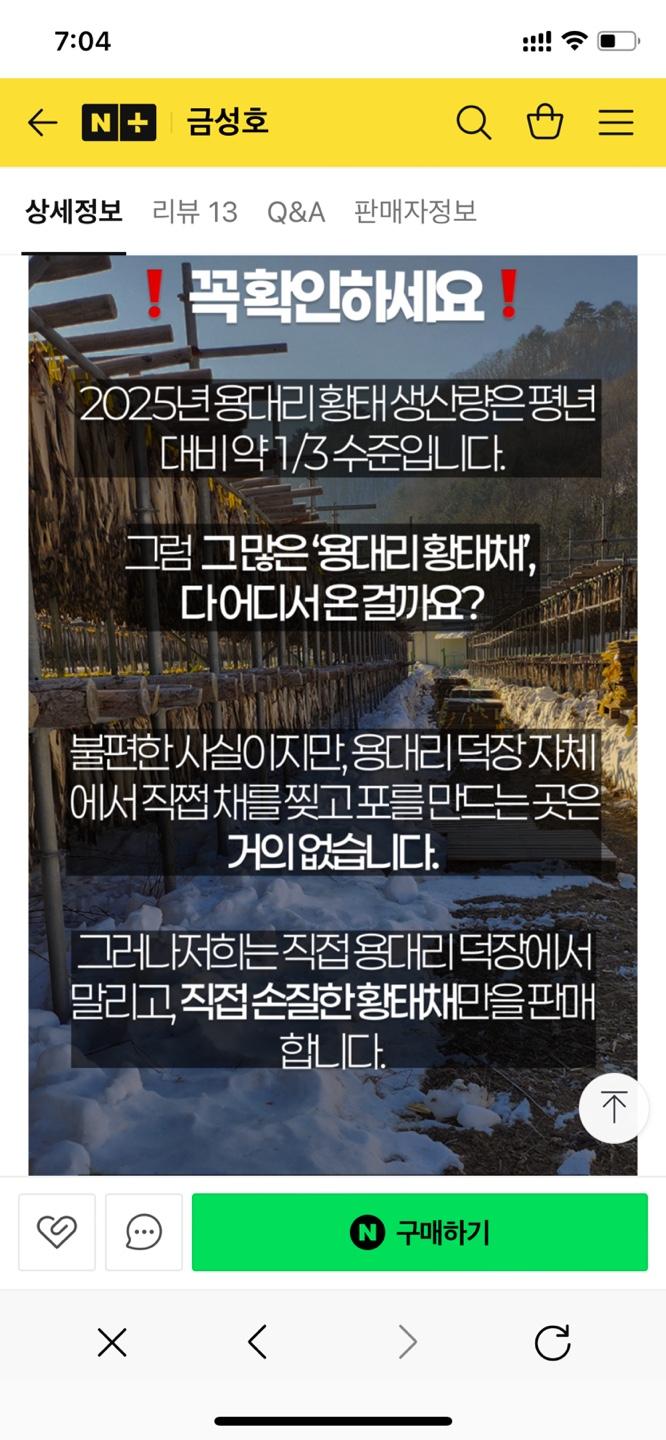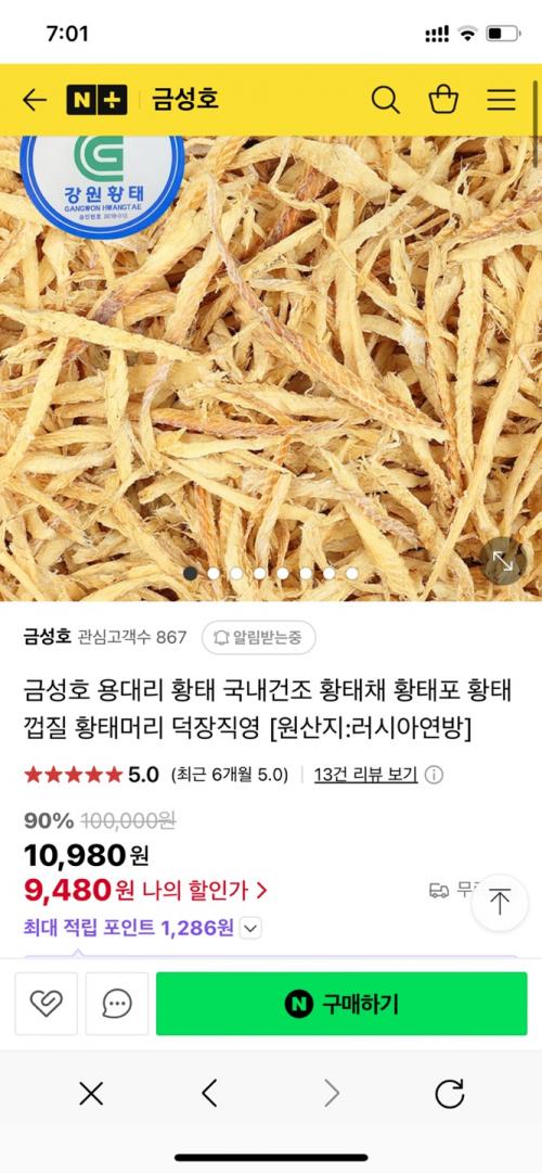 [네이버] 용대리 황태채 100g (9,480/무료배송)