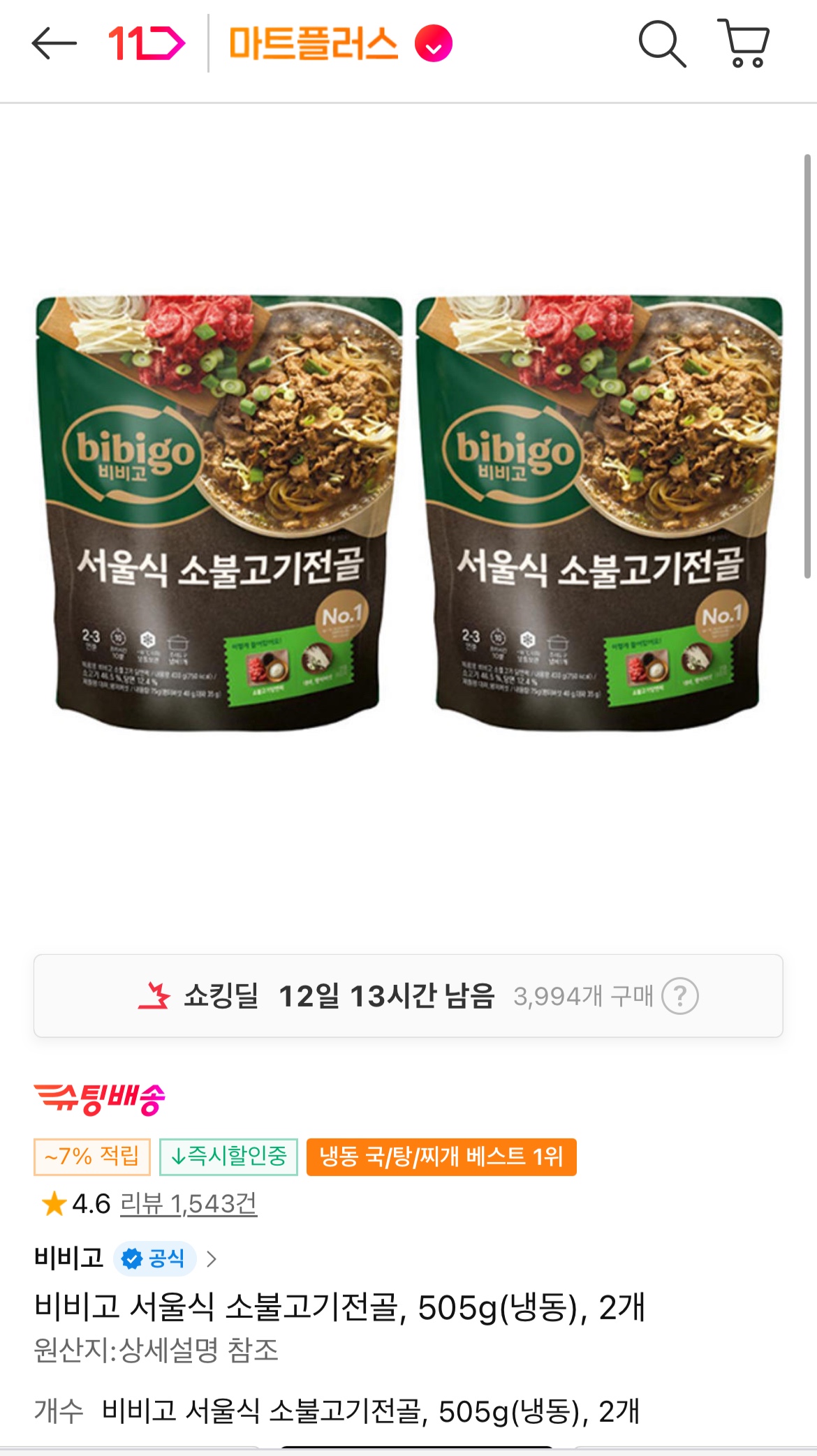 [11번가] 비비고 서울식 소불고기전골 505g 2개 (24,900원/무료) > 국내핫딜