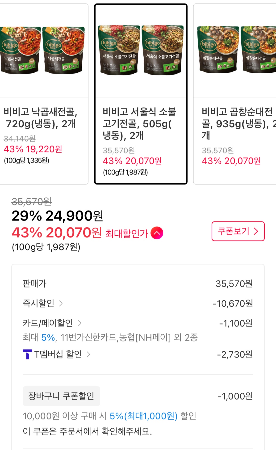 [11번가] 비비고 서울식 소불고기전골 505g 2개 (24,900원/무료)