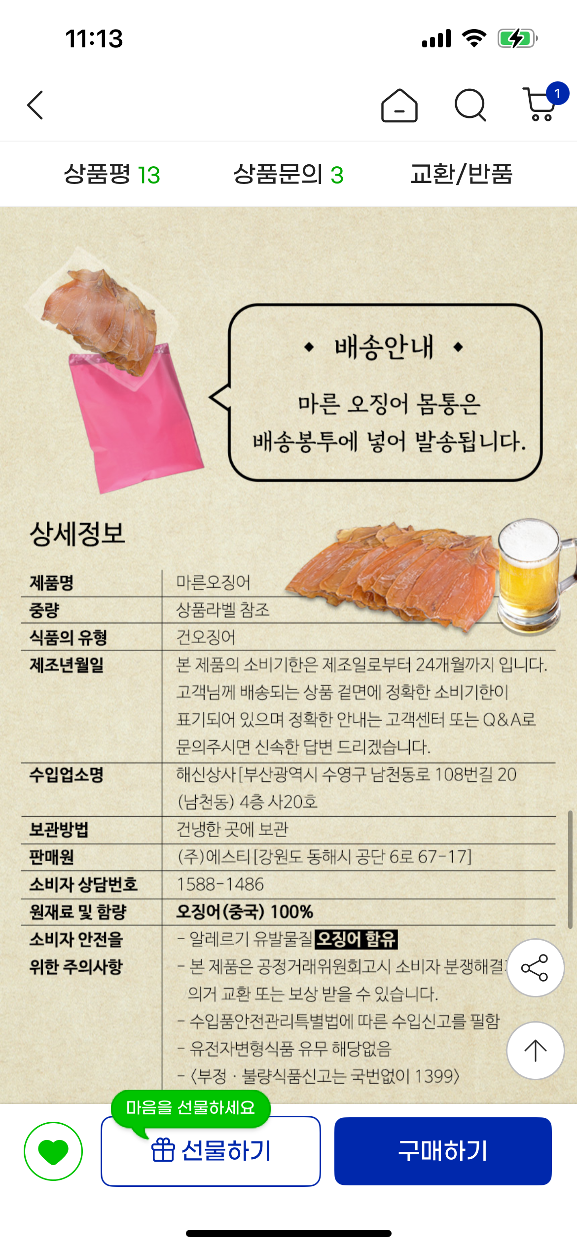 다리 없어서 이 안좋은데 오징어는 드셔야하시는 분들 추천합니다.