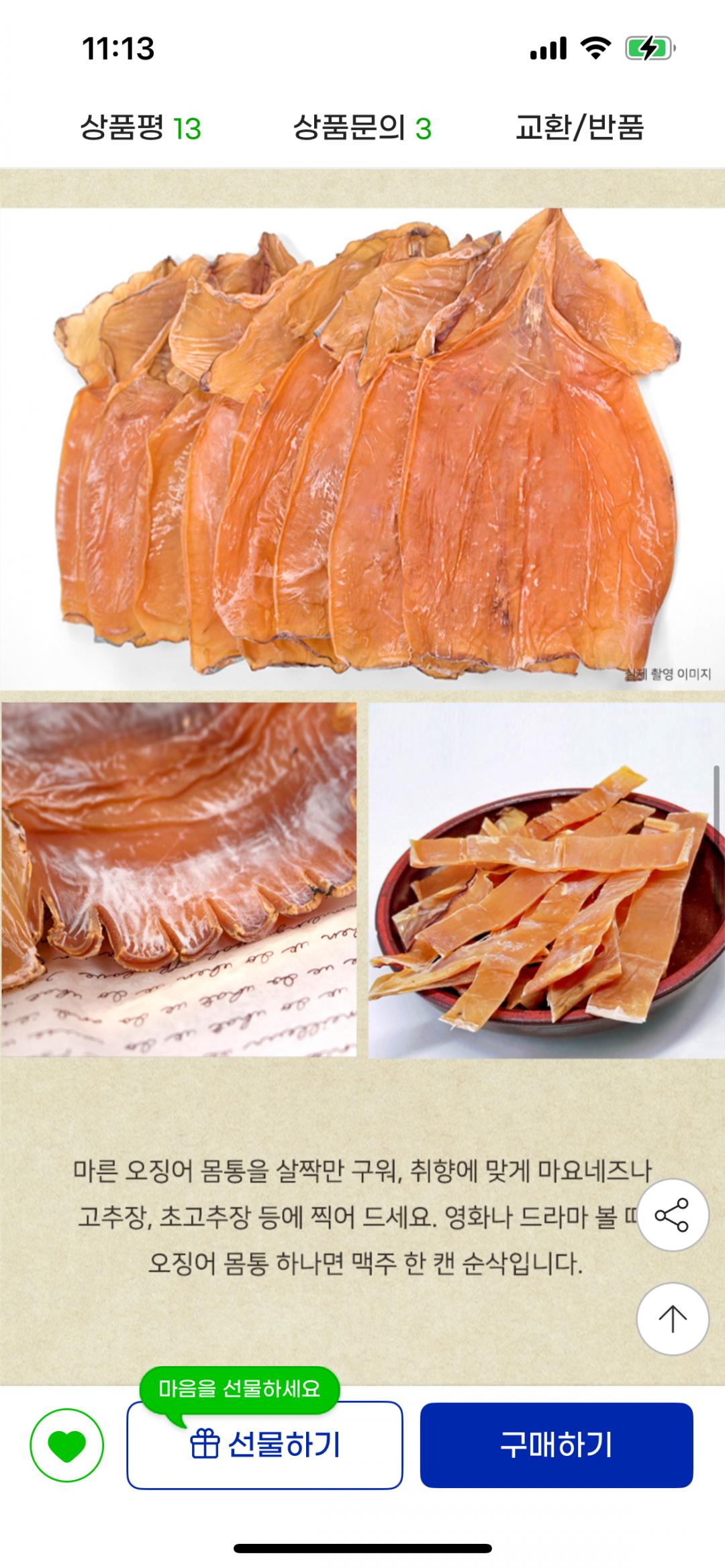 [지마켓] 말린 껍질없는 몸통 오징어 500g 20~25미 내외( (22,170원/무료) > 국내핫딜