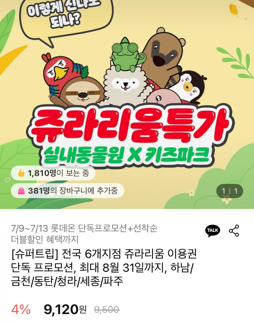 [롯데온] 쥬라리움 이용권 파주 대인권 (9,120원/무료) > 국내핫딜