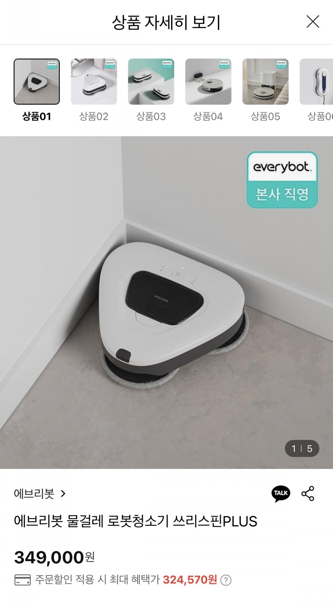 [롯데온] 에브리봇 쓰리스핀PLUS 물걸레 로봇청소기 (324,570원/무료)