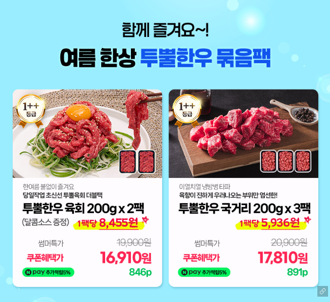 [네이버] 엄마네한우 1++ 육회 400g + 소스증정 (15,910원 / 무료)