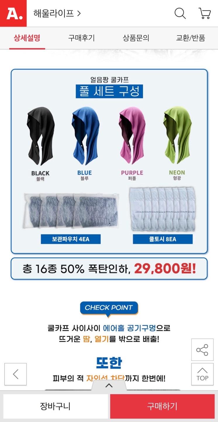 [옥션] 얼음짱 쿨스카프 4개+쿨토시 8개 (11,730원/무배) > 국내핫딜