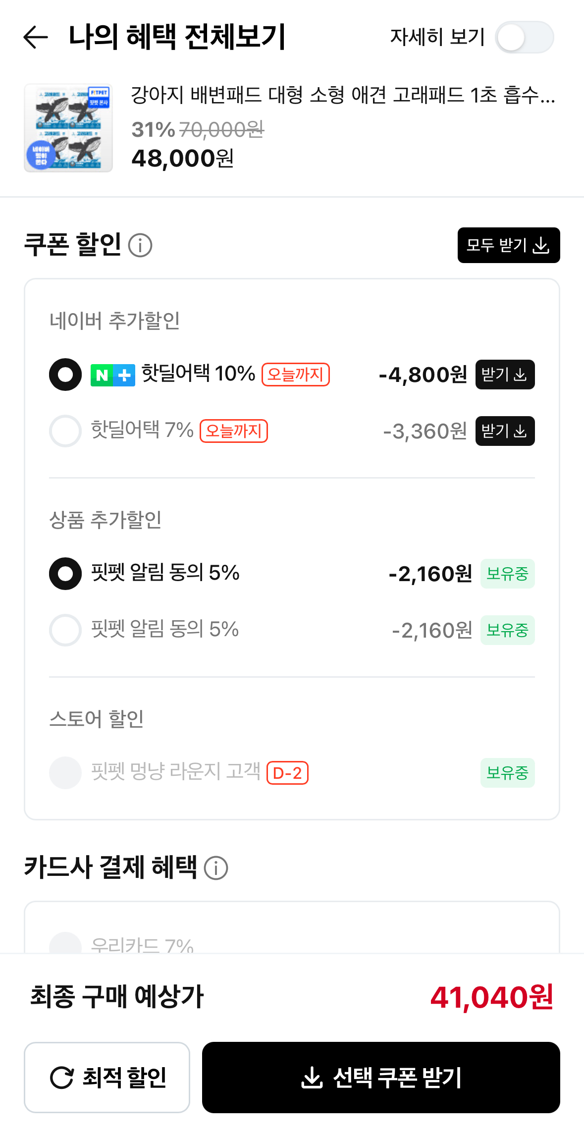 [네이버] 고래패드 강아지 배변패드 대형 (41,040원/무배)