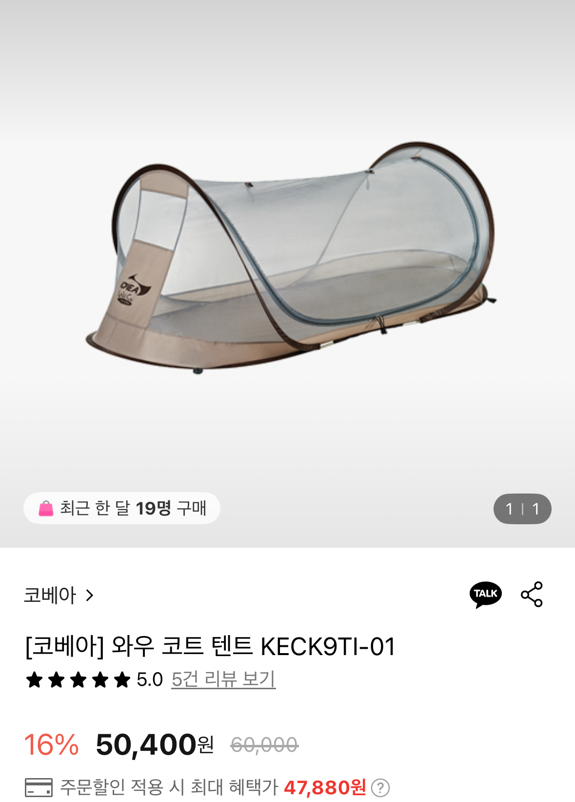 [롯데온] 코베아 와우 코트 텐트 (47,880원/무료)