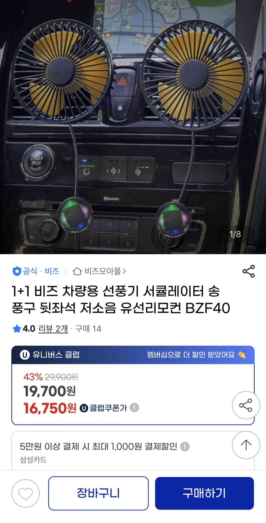 송풍구에 끼워 사용하는 선풍기고 유선 리모컨이라 사용하기도 편할 것 같아요