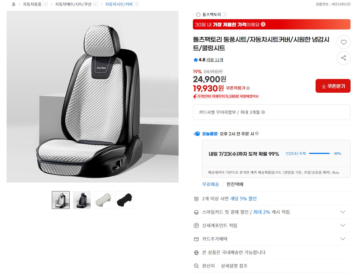 여름에 운전 오래 하면 엉덩이 땀차고 답답한데