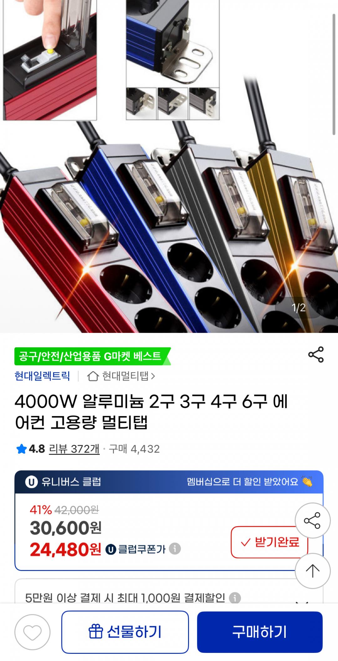 이거 최대 4000W에 화재 예방도 된다고 해서 주문했네요