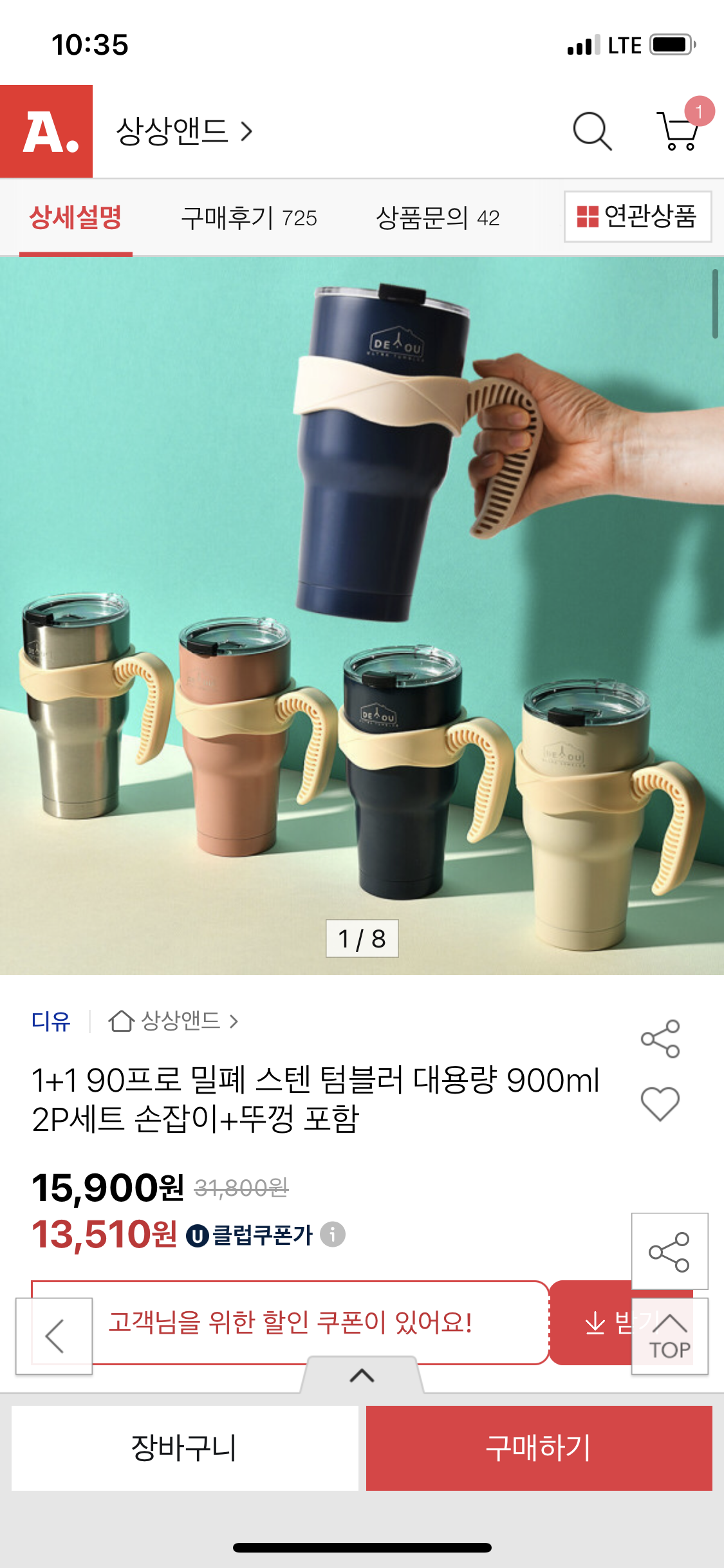 [지마켓] 90프로 밀폐 스텐 텀블러 대용량 900ml 1+1 (13,510원/무배) > 국내핫딜